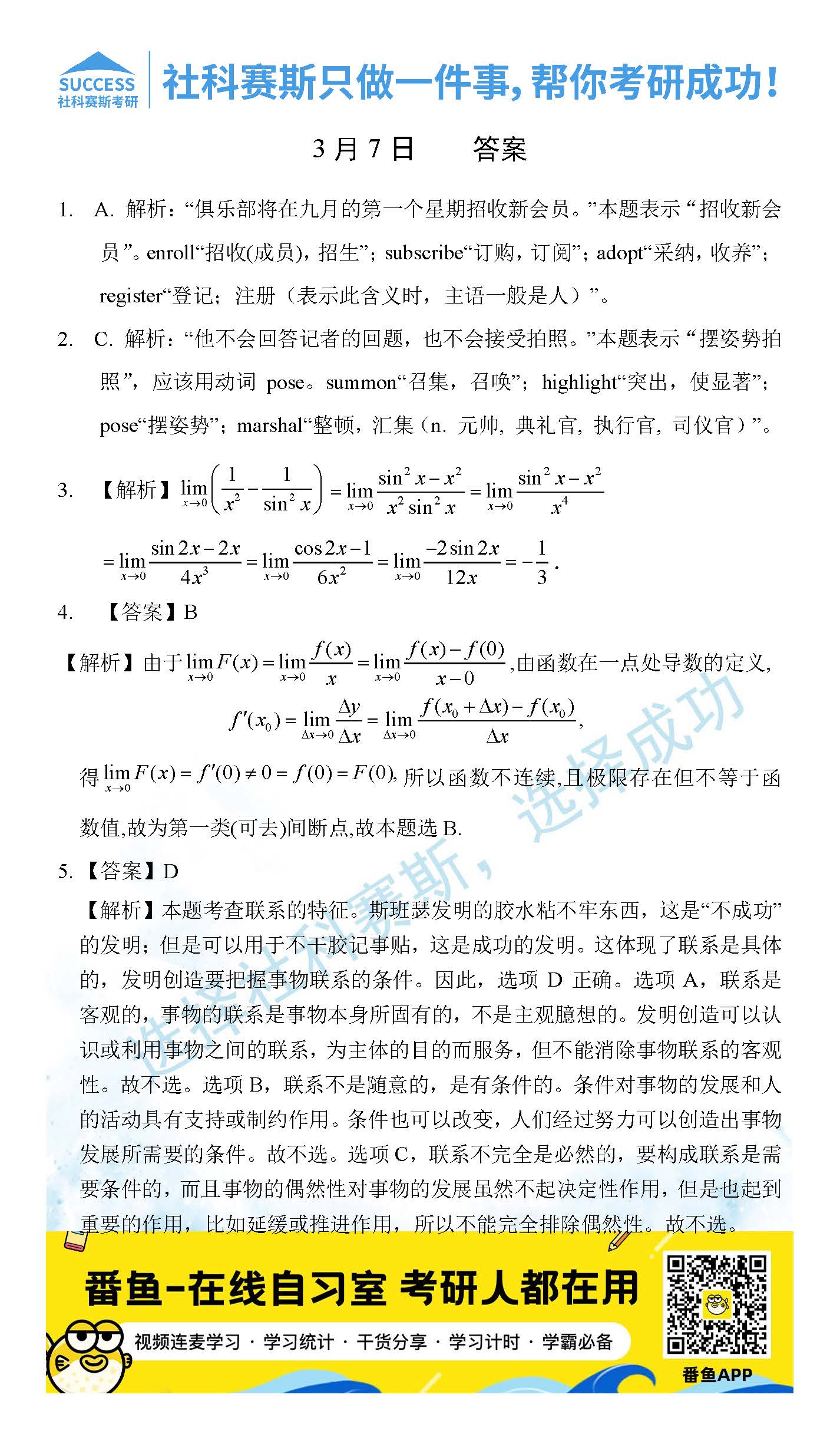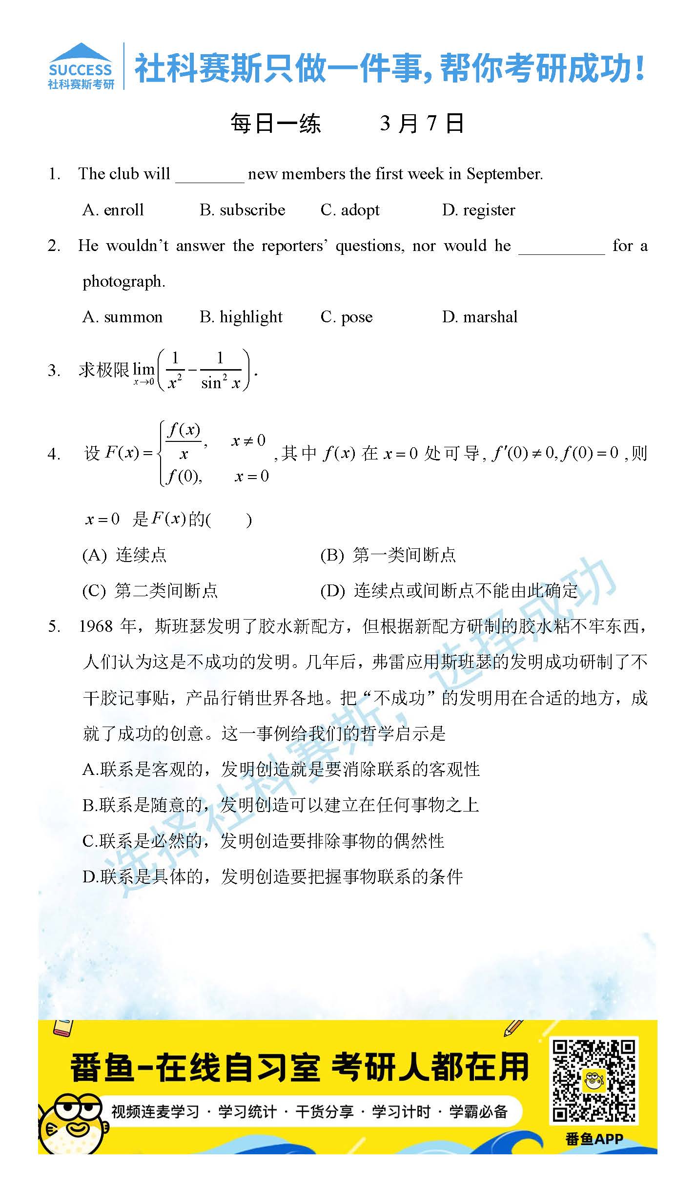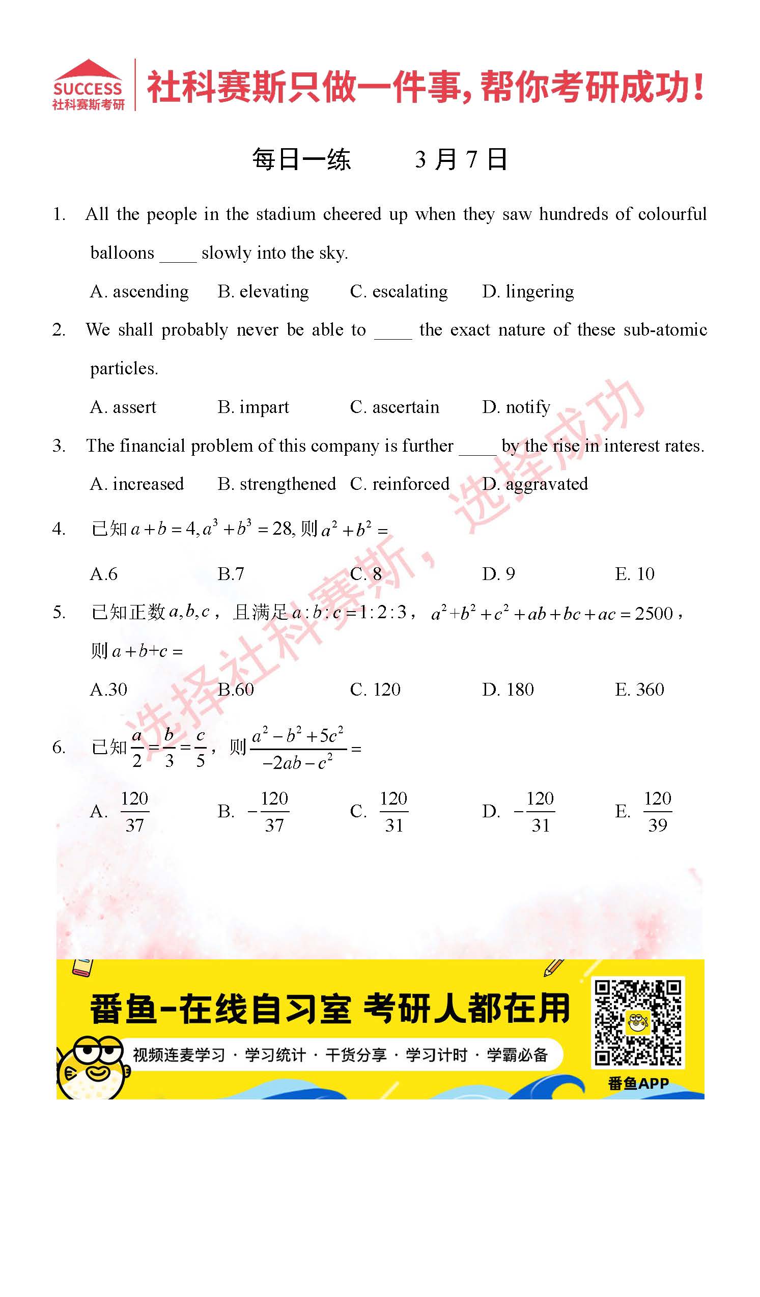 導讀:考研是一場持久戰(zhàn),保持良好的學習習慣,是能確保復習高效的關鍵。今天社科賽斯MBA備考網小編整理了“2022管理類聯3月7日每日一練及答案”的內容,希望能對廣大考生有所幫助。