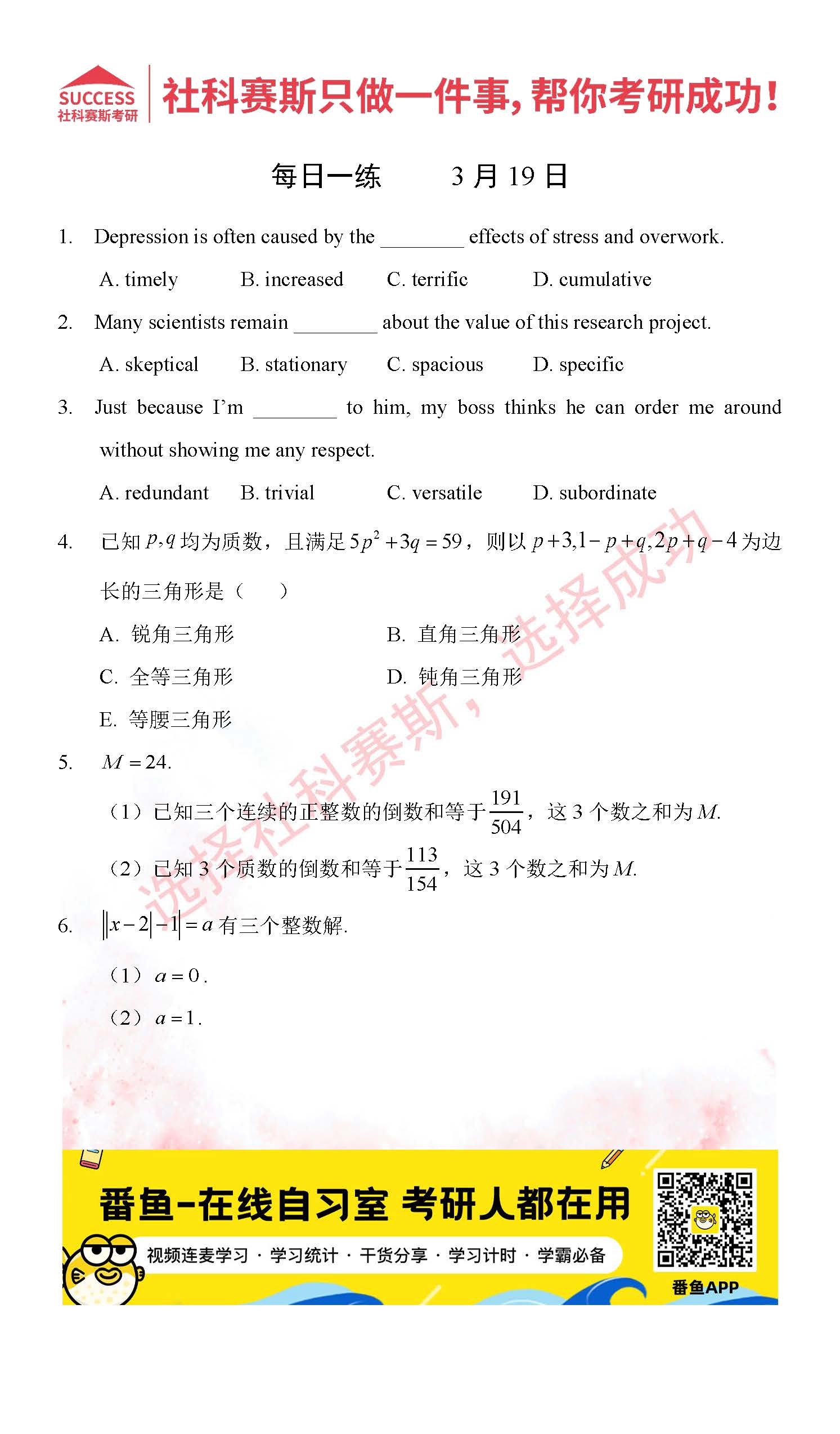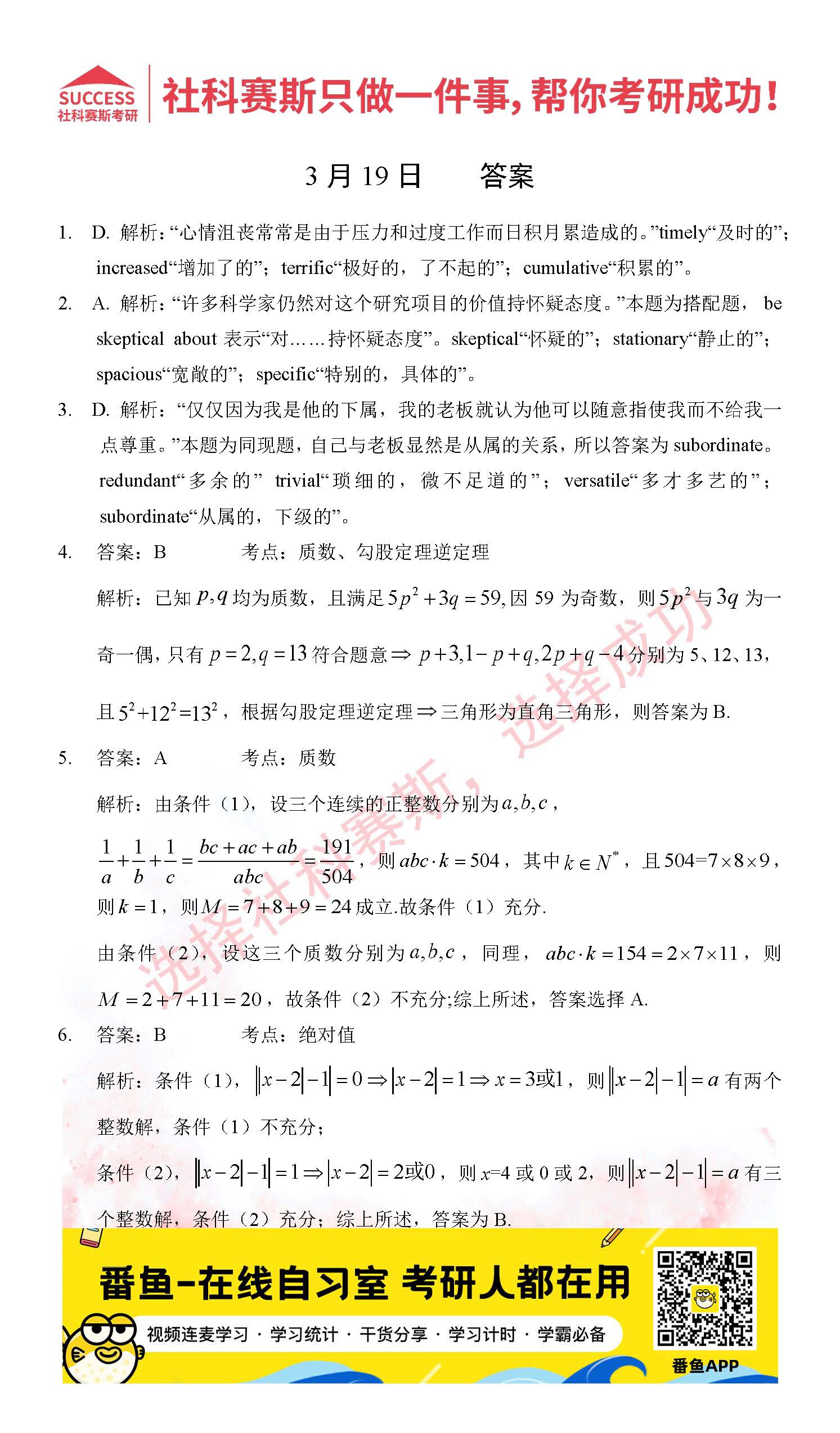 首頁> 管理類聯(lián)考每日一練 > 2022管理類聯(lián)考3月19日每日一練及答案