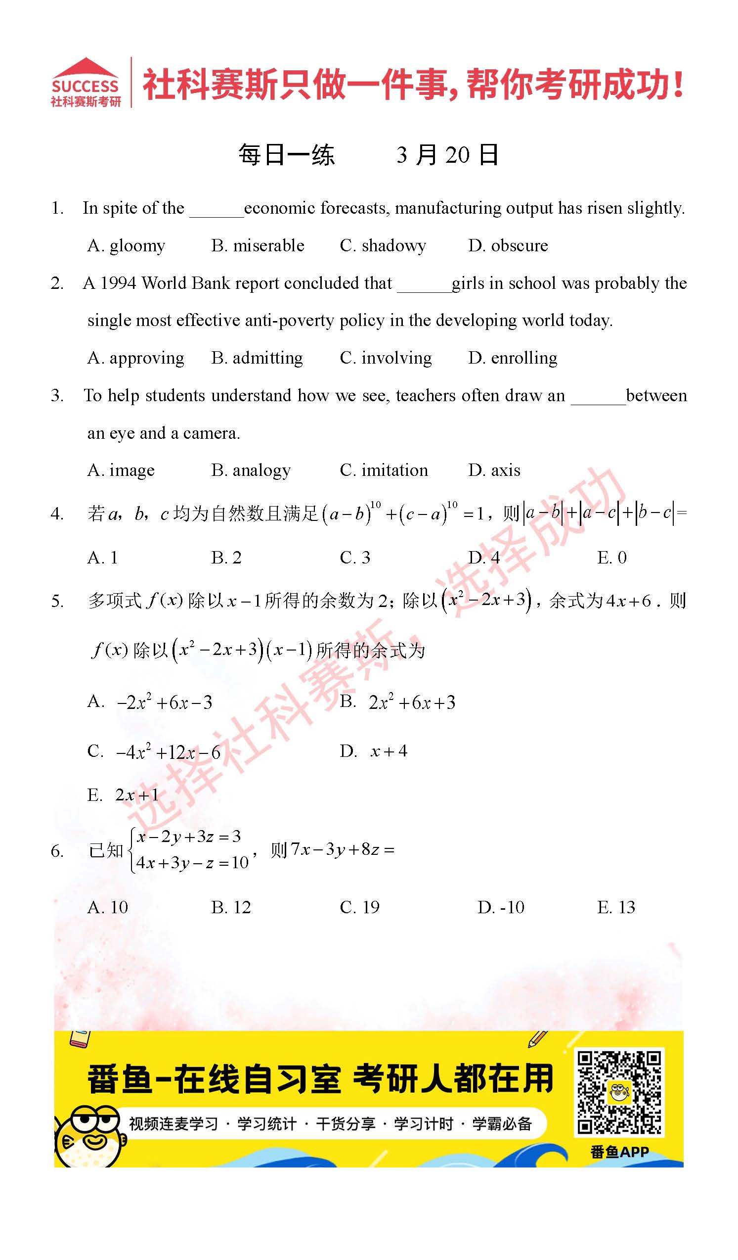 首頁> 管理類聯(lián)考每日一練 > 2022管理類聯(lián)考3月20日每日一練及答案