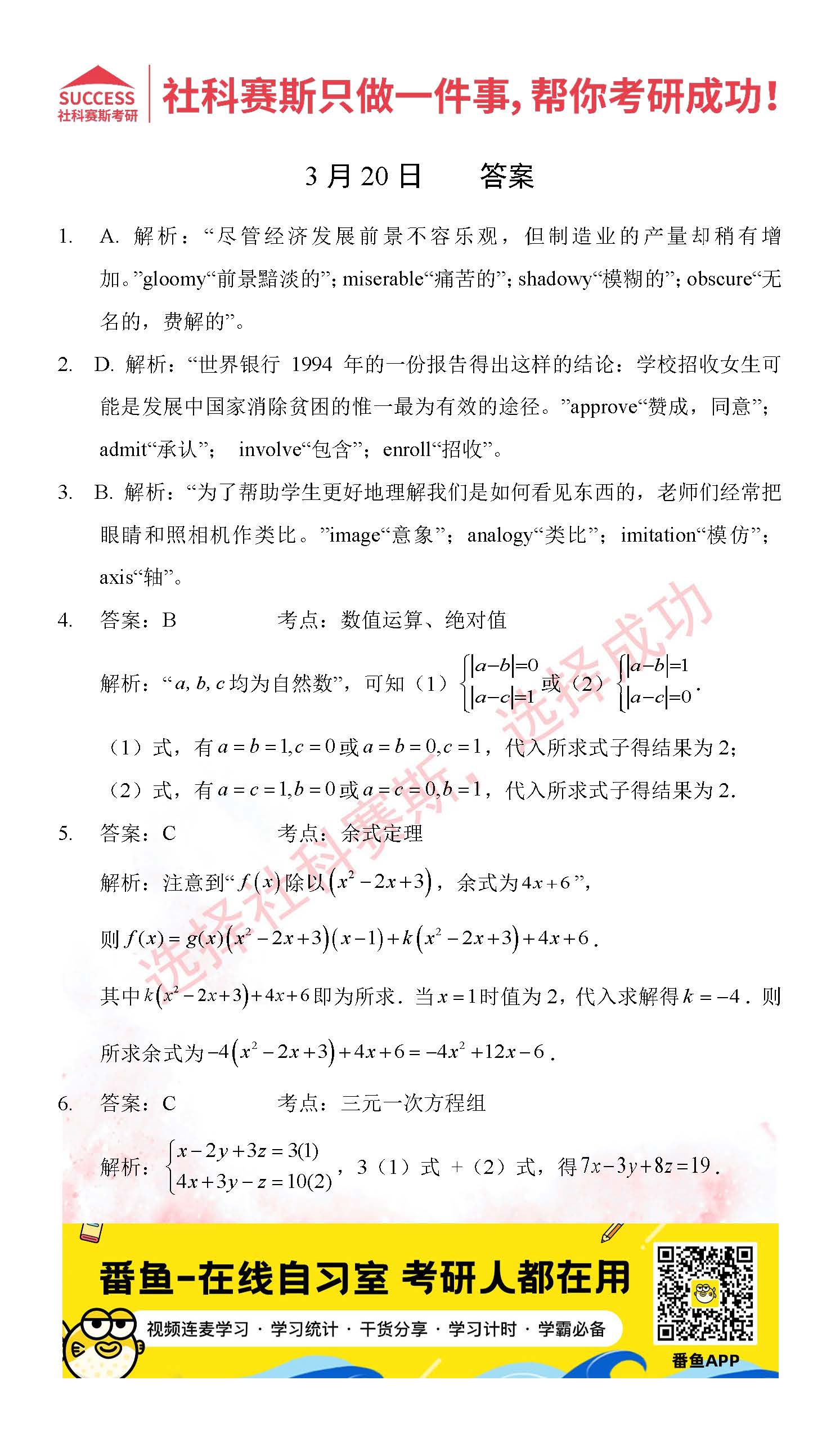 導讀:考研是一場持久戰(zhàn),保持良好的學習習慣,是能確保復習高效的關(guān)鍵。今天社科賽斯MBA備考網(wǎng)小編整理了“2022管理類聯(lián)3月20日每日一練及答案”的內(nèi)容,希望能對廣大考生有所幫助。