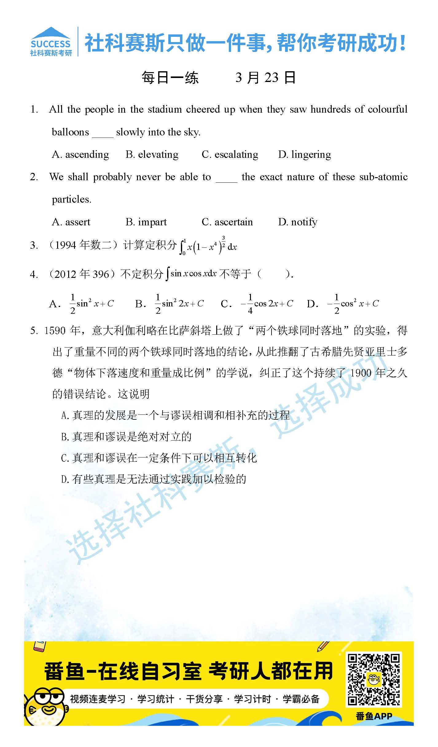 導(dǎo)讀:考研是一場持久戰(zhàn),保持良好的學(xué)習(xí)習(xí)慣,是能確保復(fù)習(xí)高效的關(guān)鍵。今天社科賽斯MBA備考網(wǎng)小編整理了“2022管理類聯(lián)3月23日每日一練及答案”的內(nèi)容,希望能對廣大考生有所幫助。