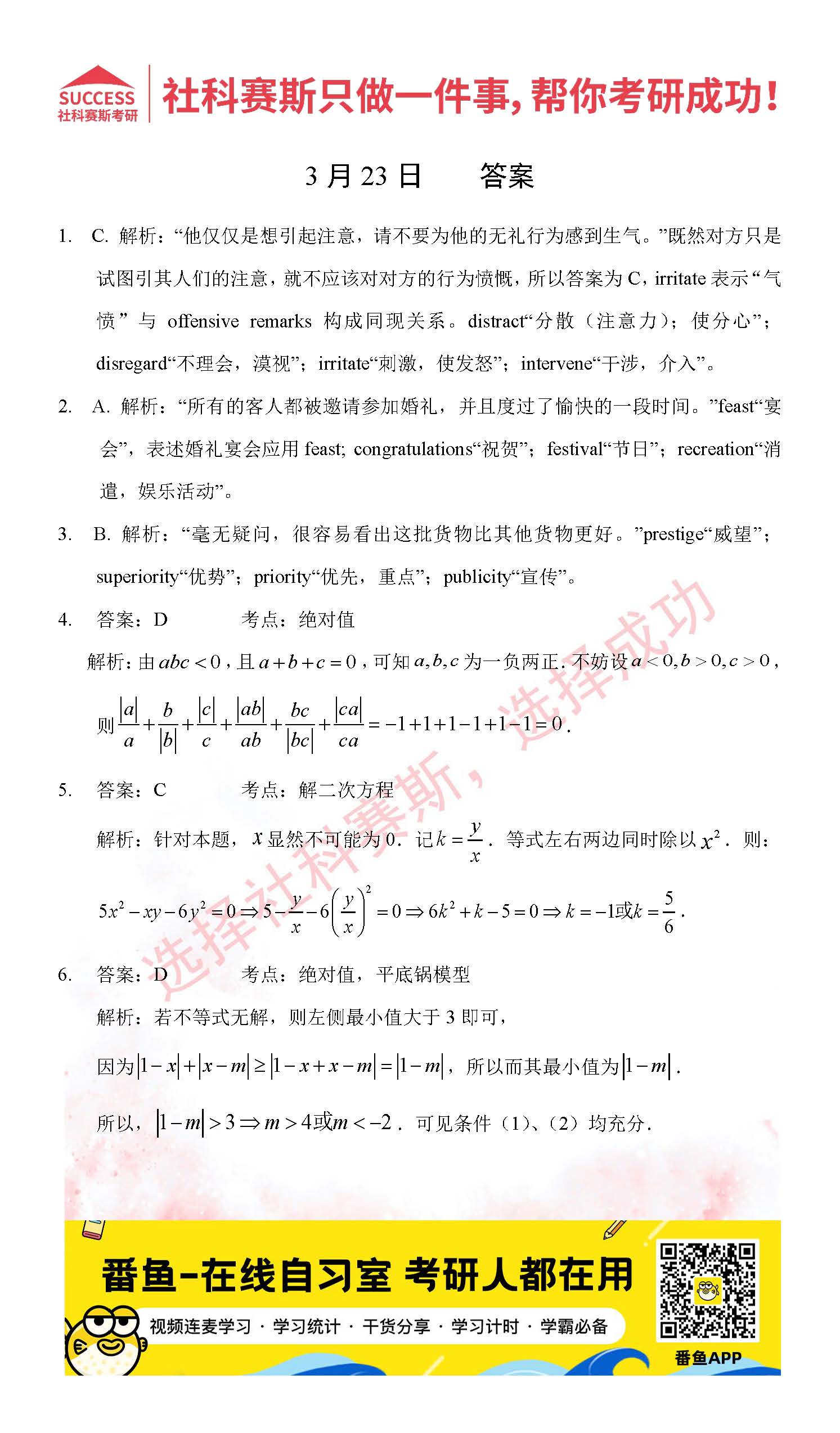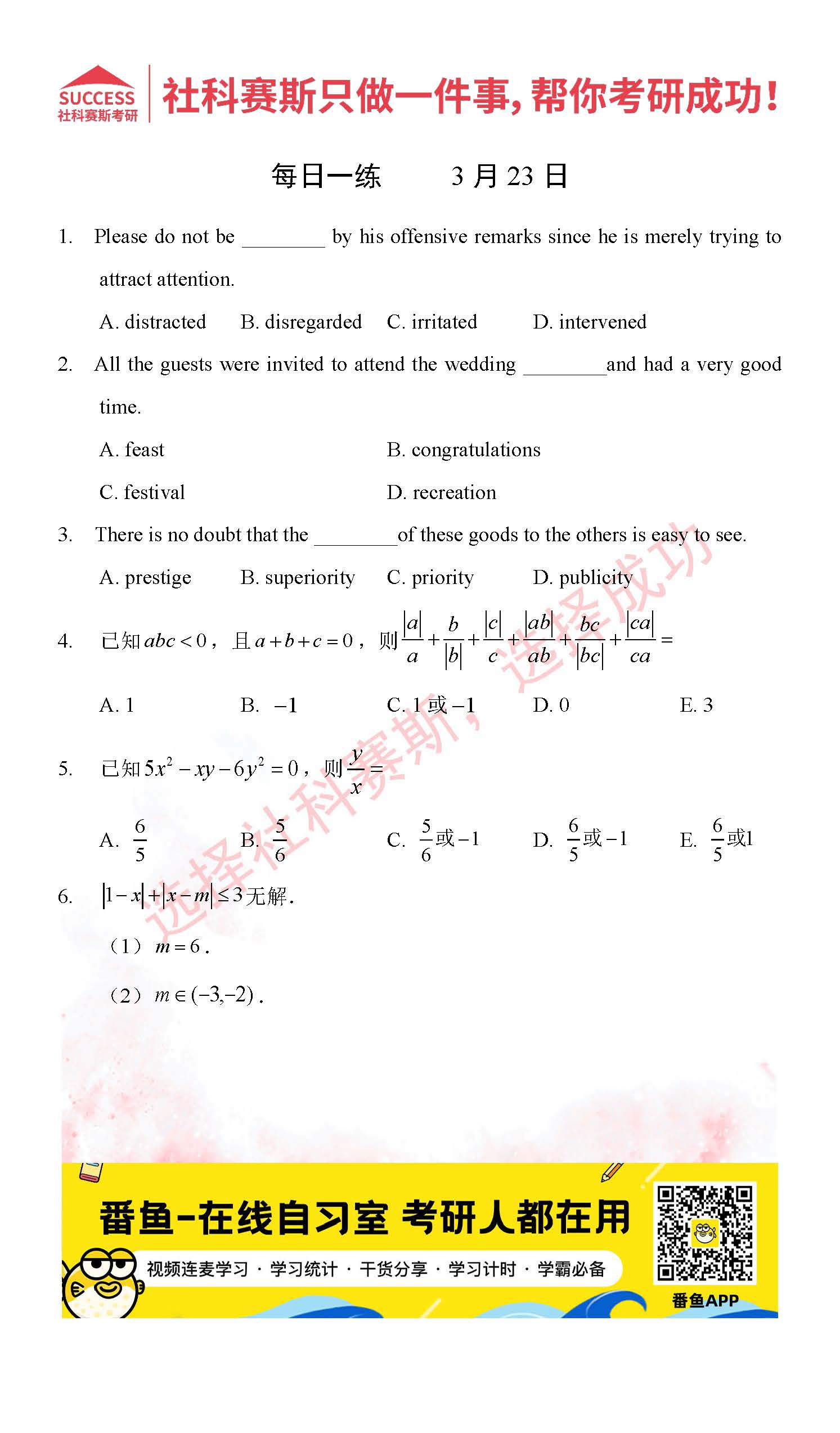 的全部內(nèi)容,希望各位考生堅(jiān)持利用起來,更多每日一練內(nèi)容請持續(xù)關(guān)注MBA備考網(wǎng)管理類聯(lián)考每日一練。