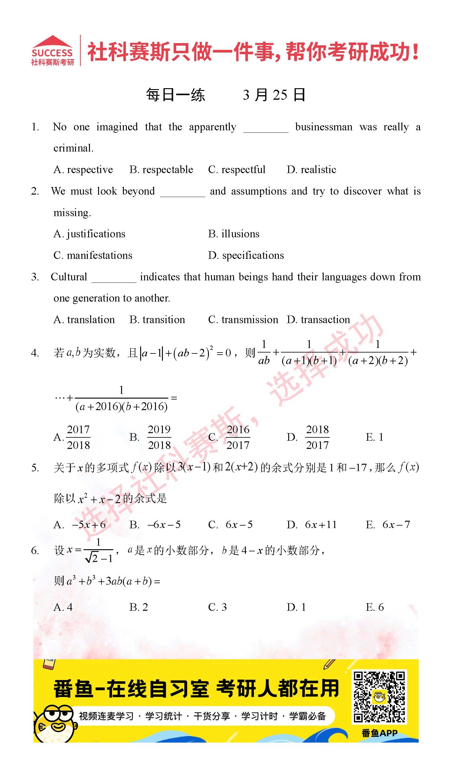 2022管理類聯(lián)考3月25日每日一練及答案”