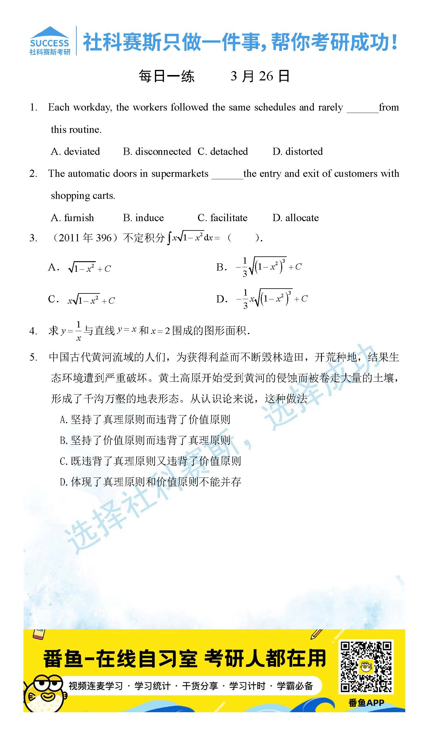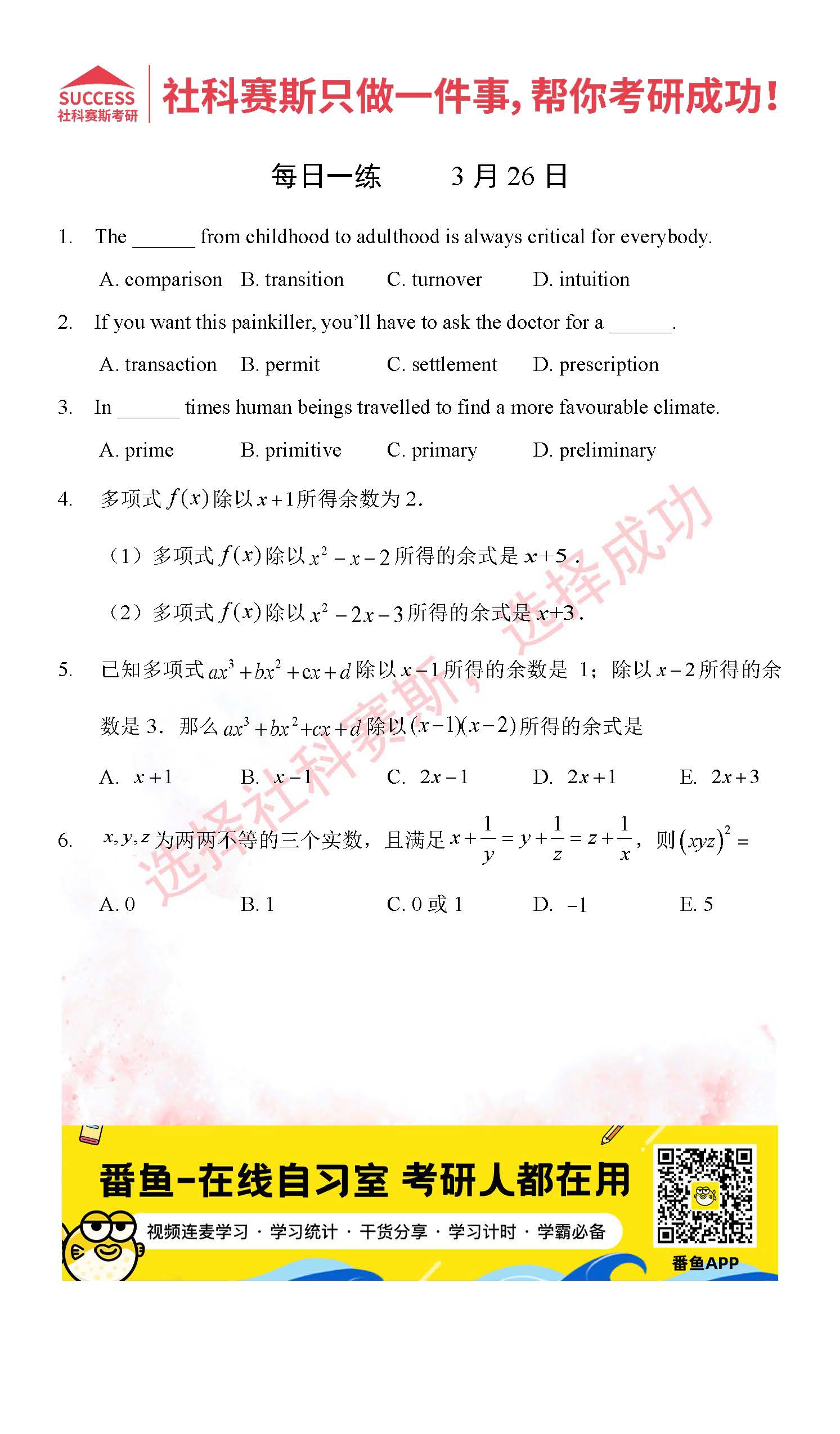 導讀:考研是一場持久戰(zhàn),保持良好的學習習慣,是能確保復習高效的關(guān)鍵。今天社科賽斯MBA備考網(wǎng)小編整理了“2022管理類聯(lián)3月26日每日一練及答案”的內(nèi)容,希望能對廣大考生有所幫助。