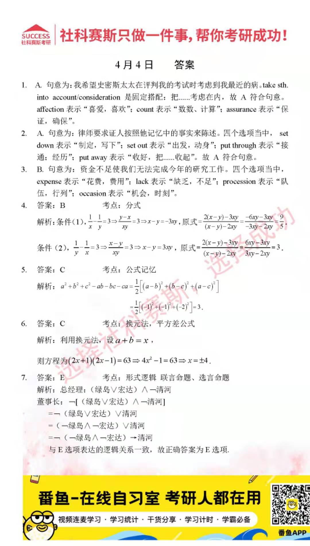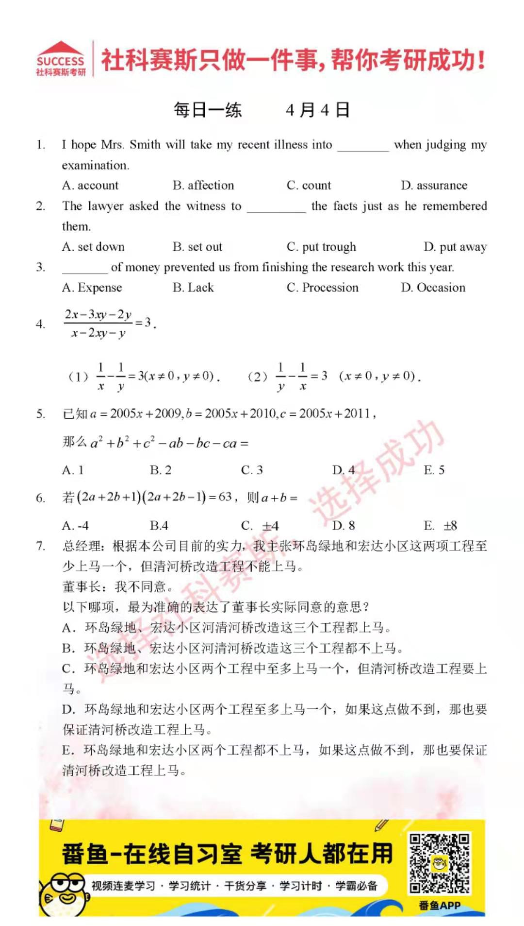 2022管理類聯(lián)考4月4日每日一練及答案”
