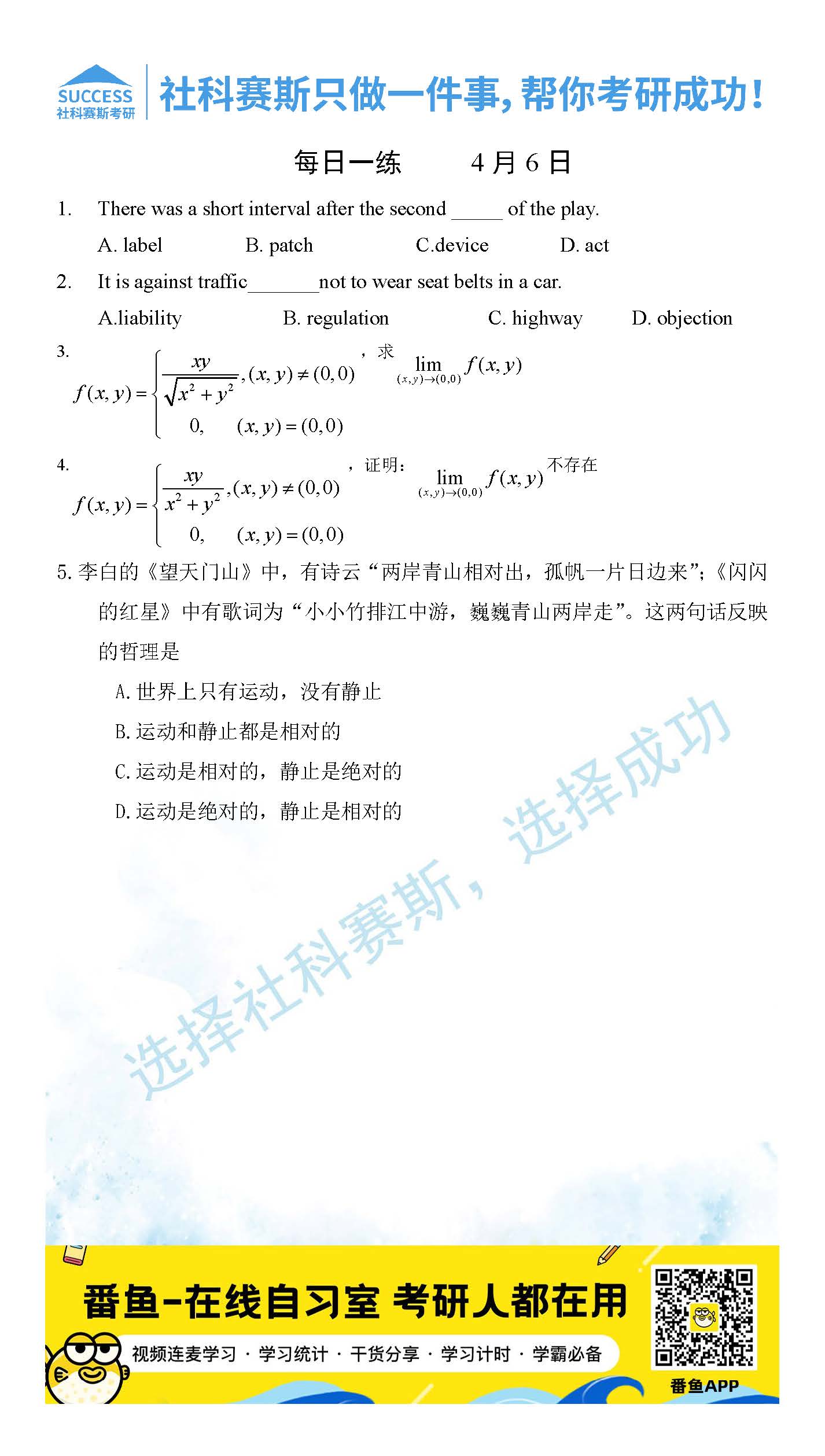 【版權(quán)與免責(zé)聲明】 如發(fā)現(xiàn)內(nèi)容存在版權(quán)問題,煩請?zhí)峁┫嚓P(guān)信息發(fā)郵件至service@mbaschool.com.cn,我們將及時溝通與處理。本站內(nèi)容除非來源注明社科賽斯,否則均為網(wǎng)絡(luò)轉(zhuǎn)載,涉及言論、版權(quán)與本站無關(guān)。