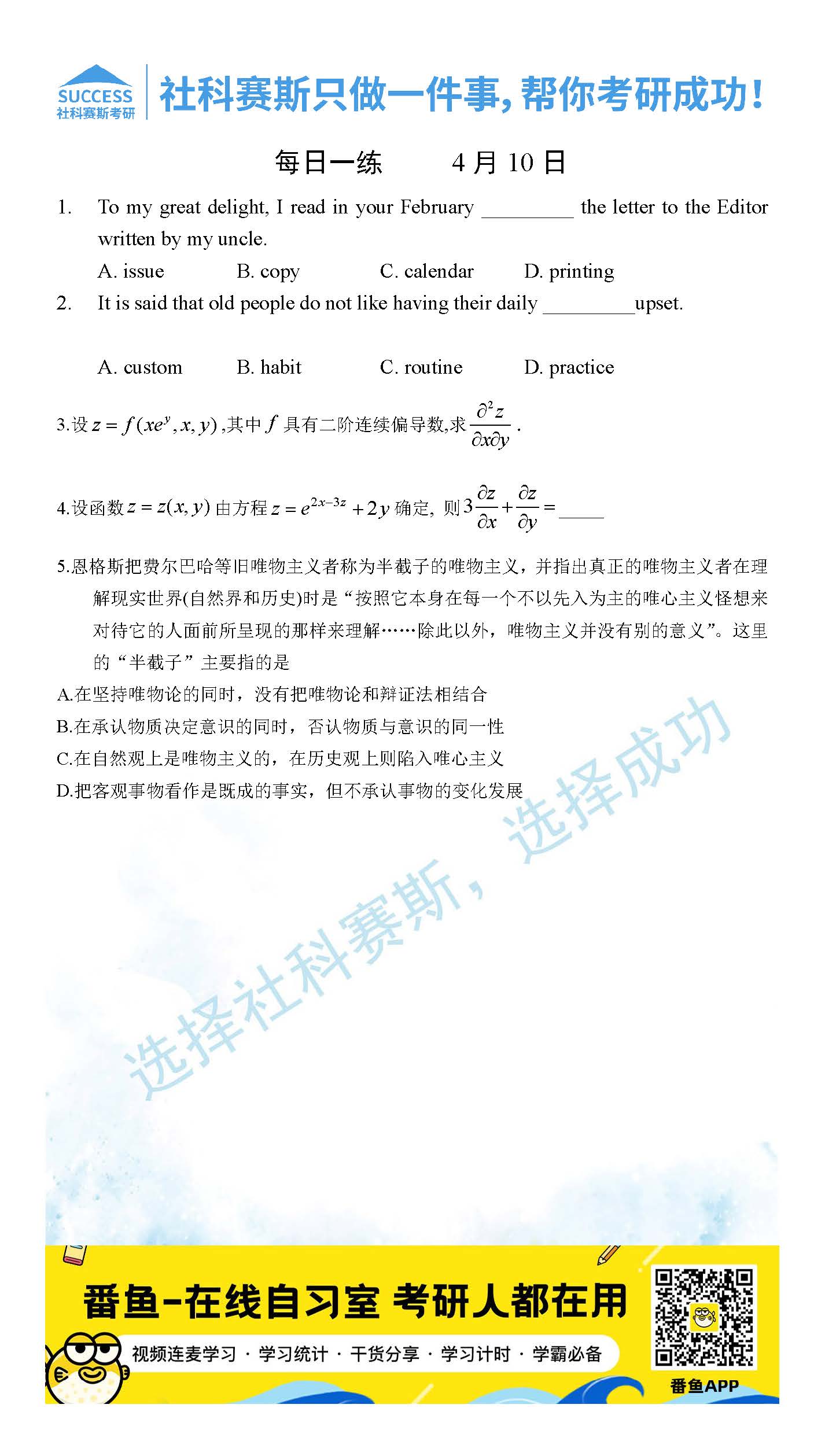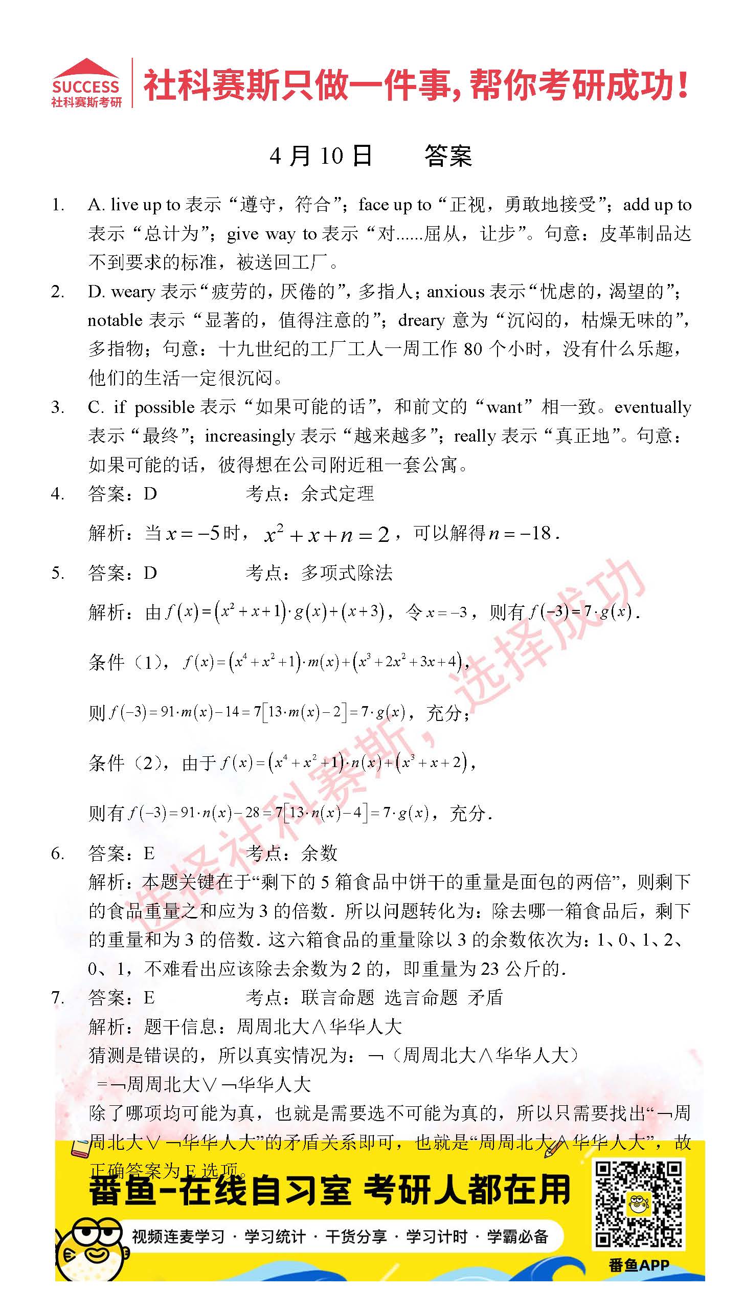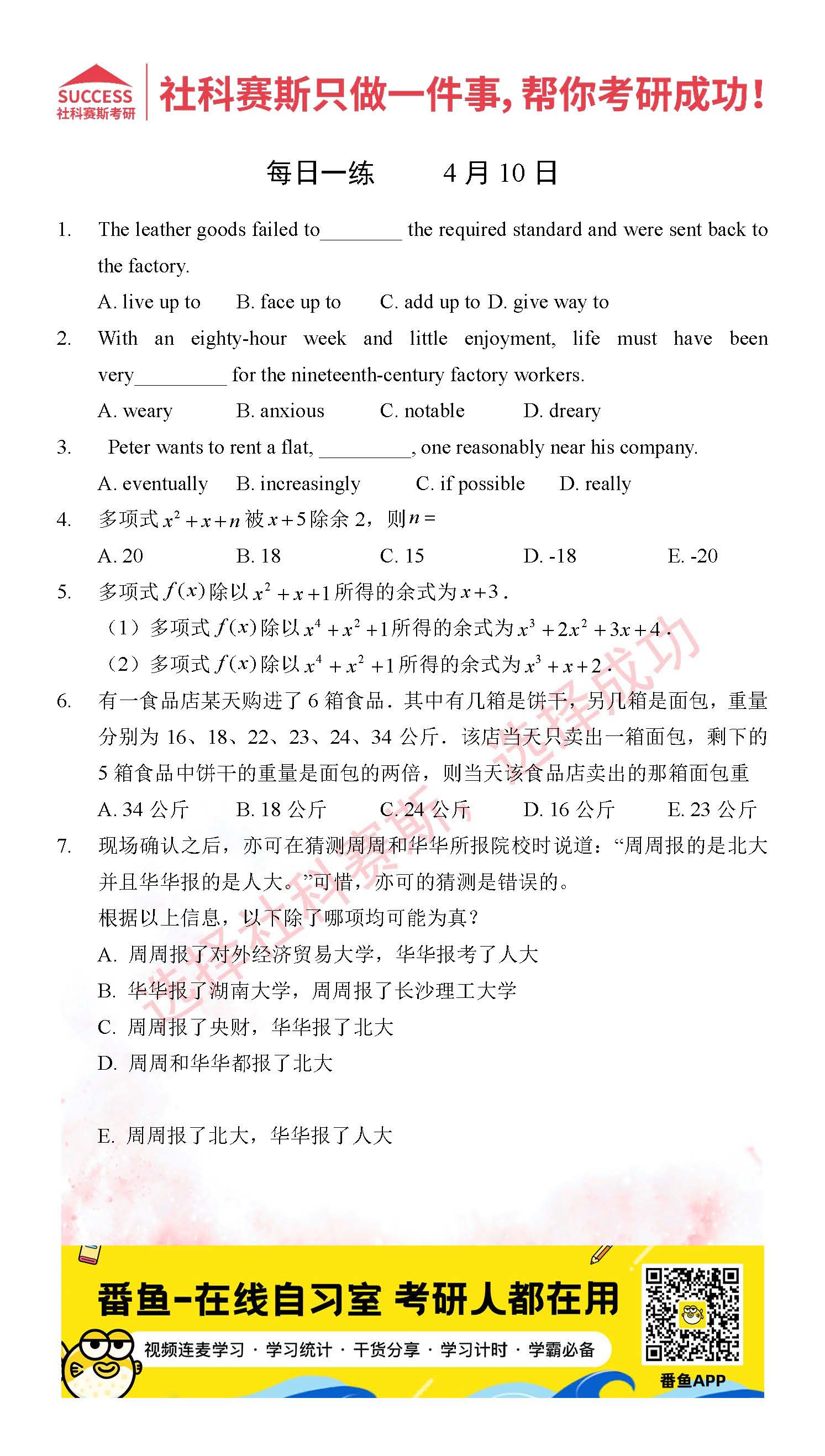首頁> 管理類聯(lián)考每日一練 > 2022管理類聯(lián)考4月10日每日一練及答案