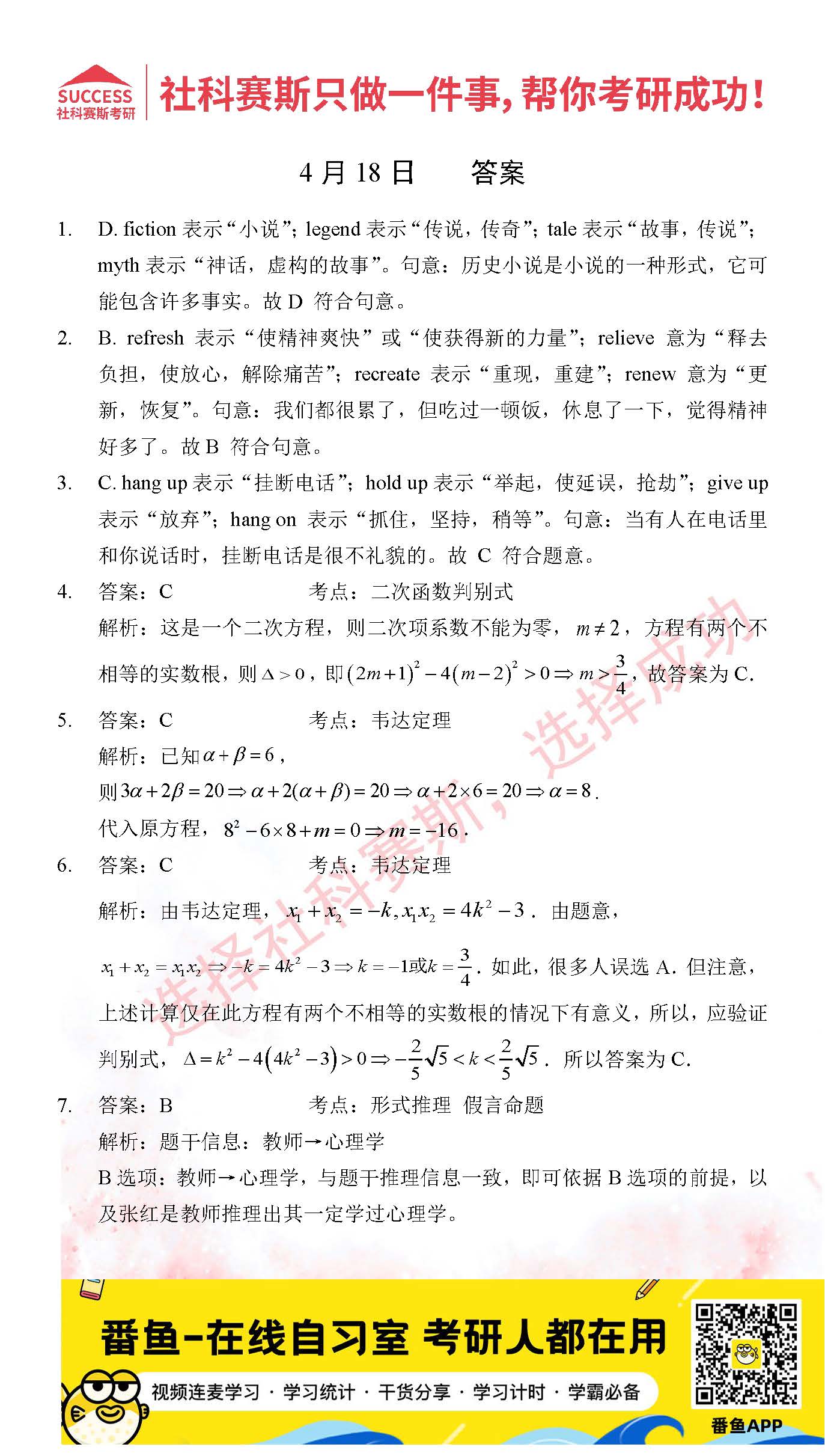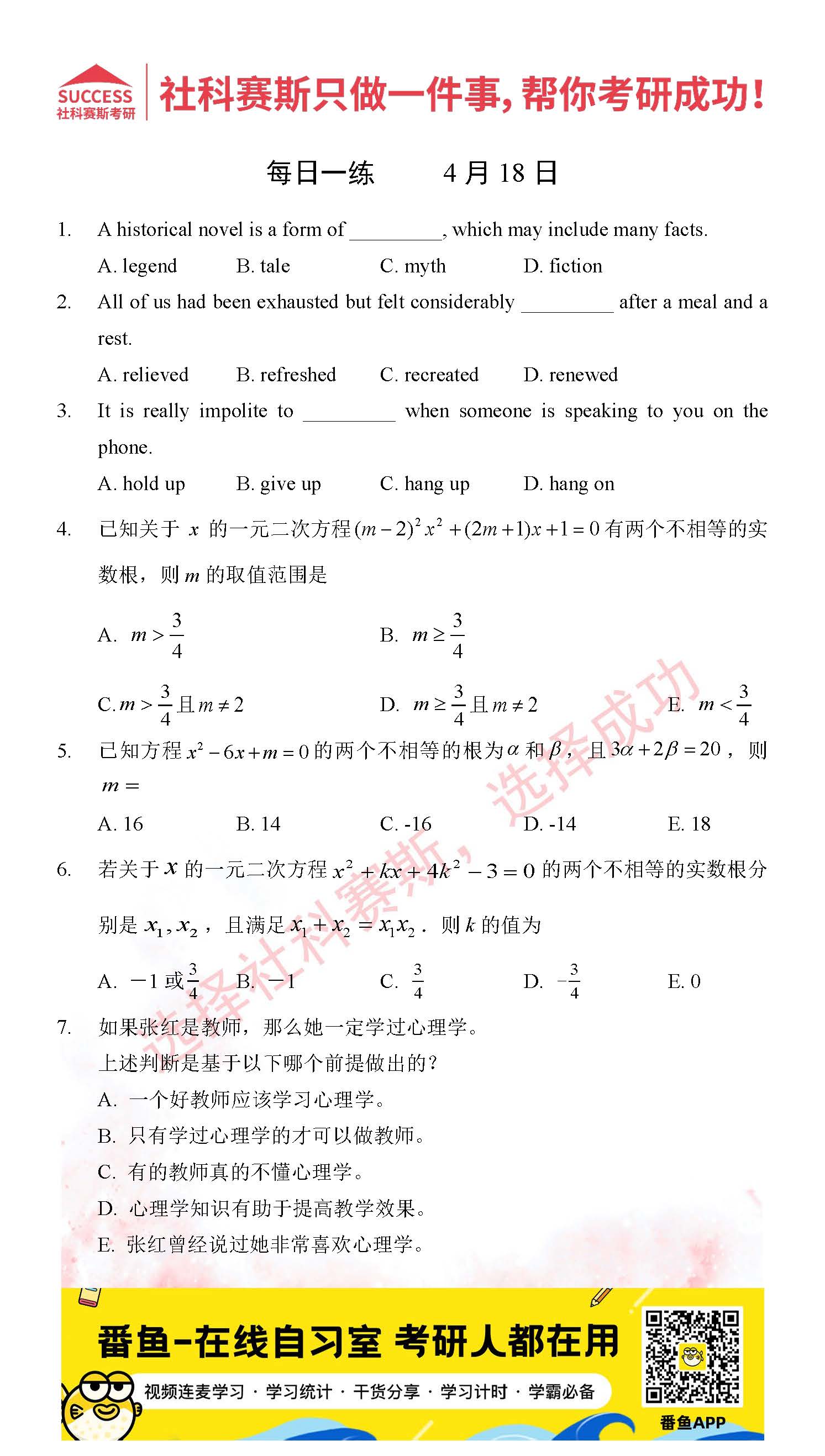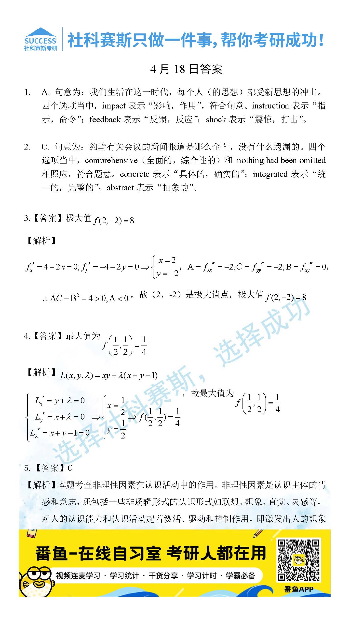 2022管理類聯(lián)考4月18日每日一練及答案”