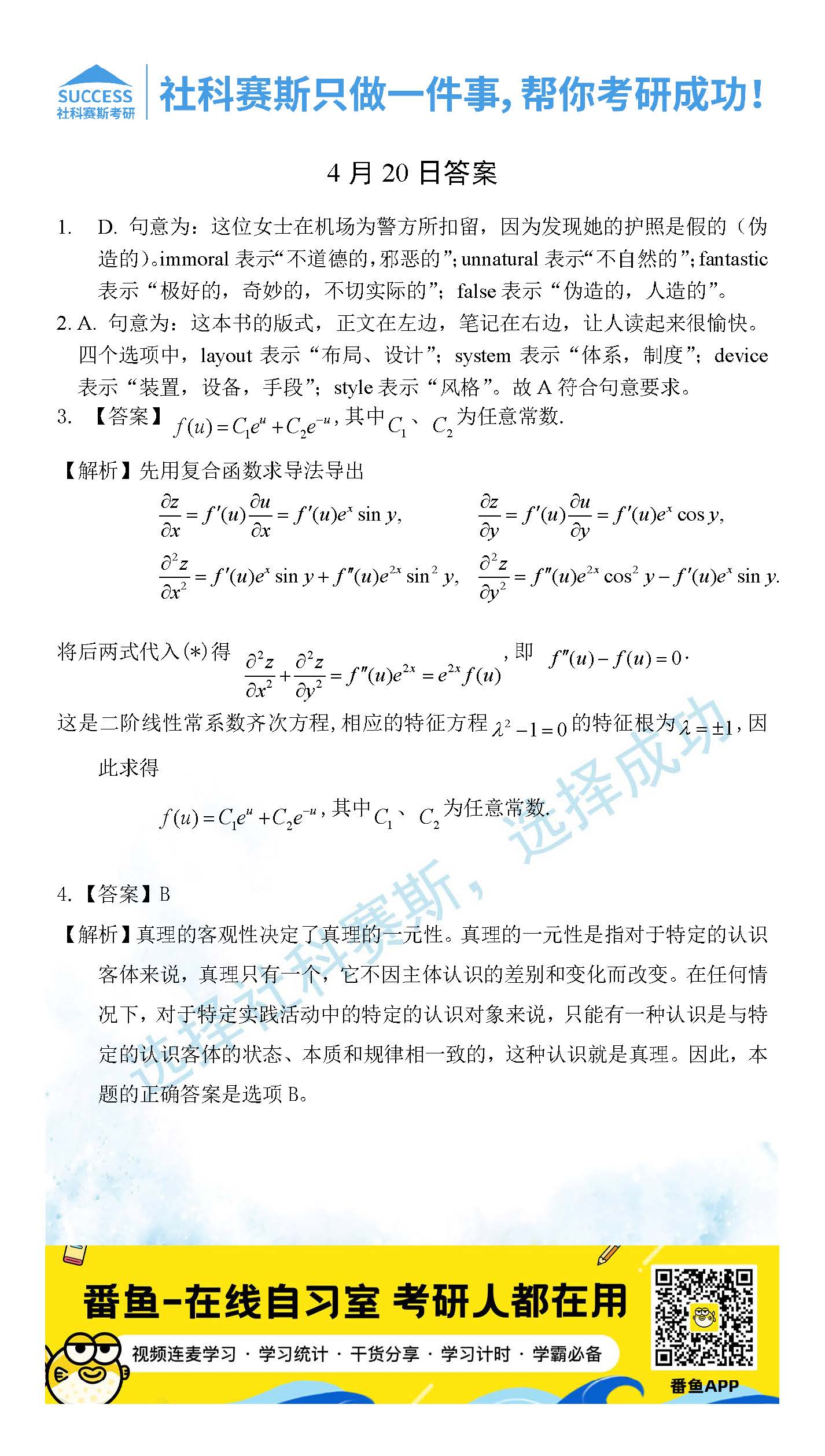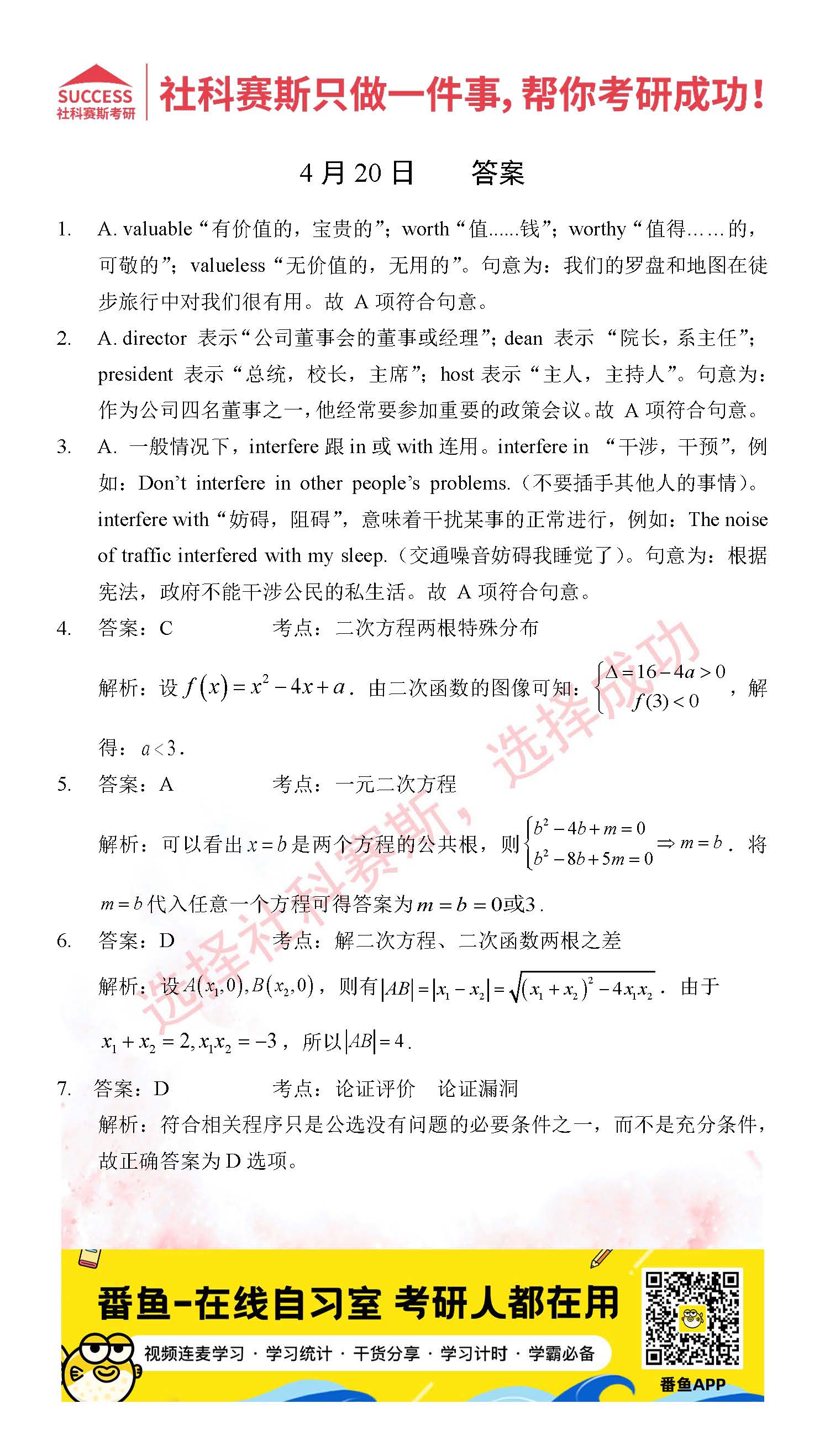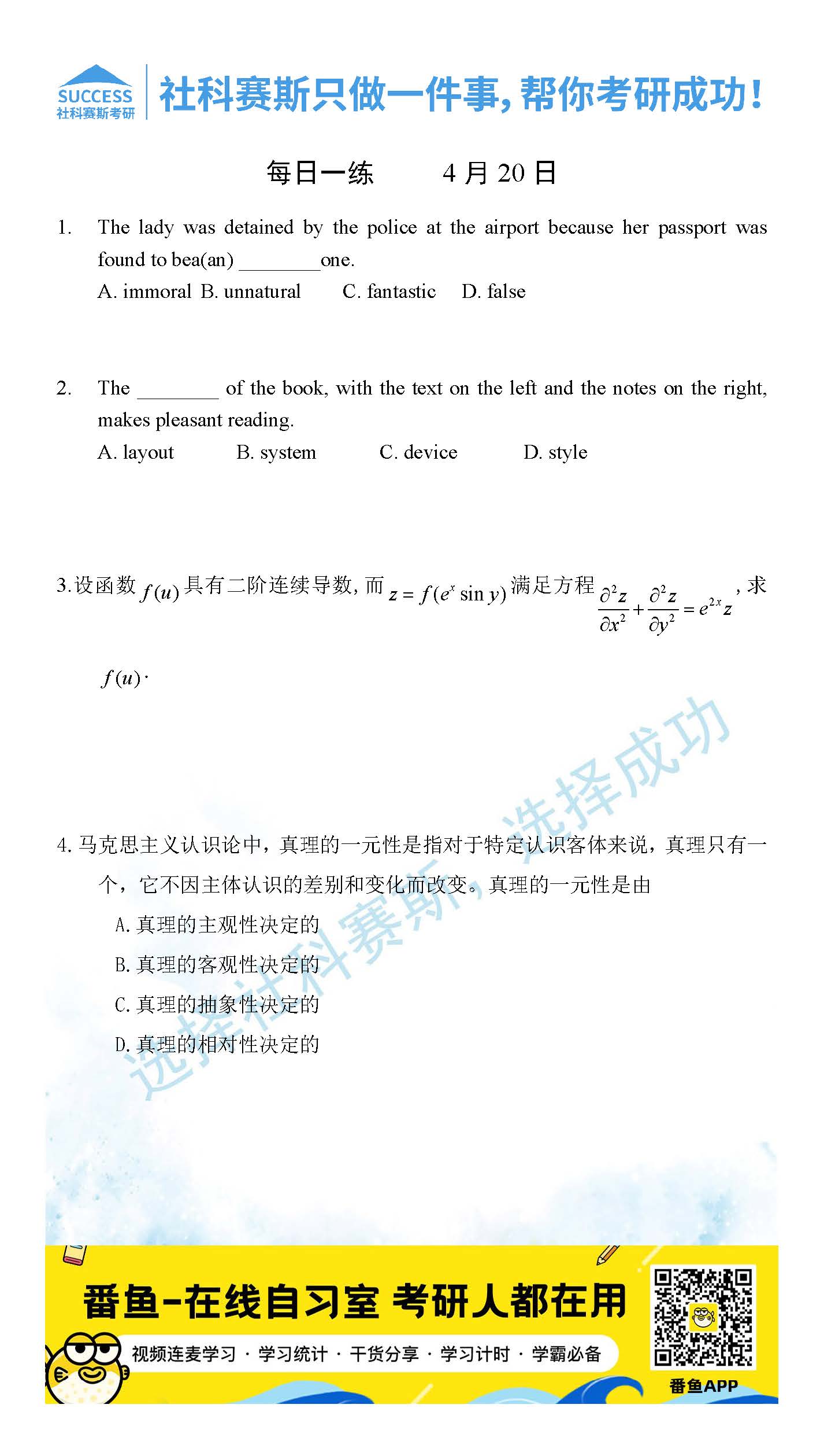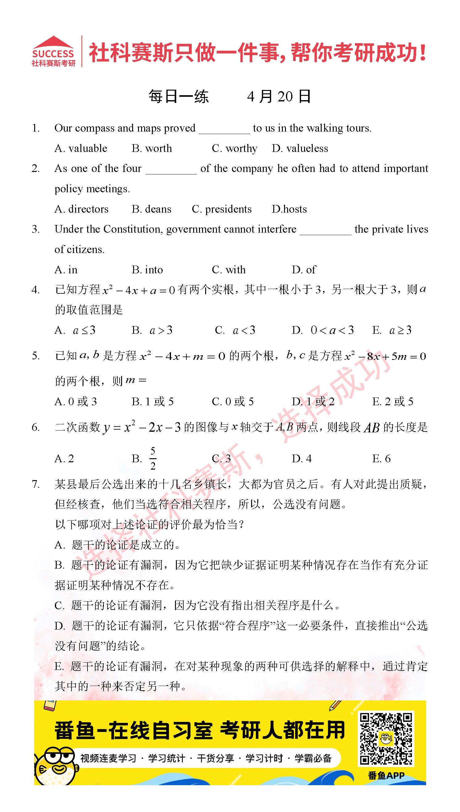 導(dǎo)讀:考研是一場持久戰(zhàn),保持良好的學(xué)習(xí)習(xí)慣,是能確保復(fù)習(xí)高效的關(guān)鍵。今天社科賽斯MBA備考網(wǎng)小編整理了“2022管理類聯(lián)考4月20日每日一練及答案”的內(nèi)容,希望能對廣大考生有所幫助。