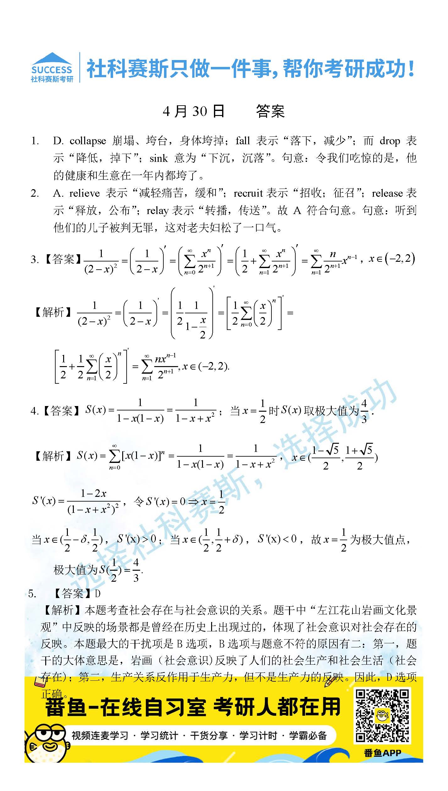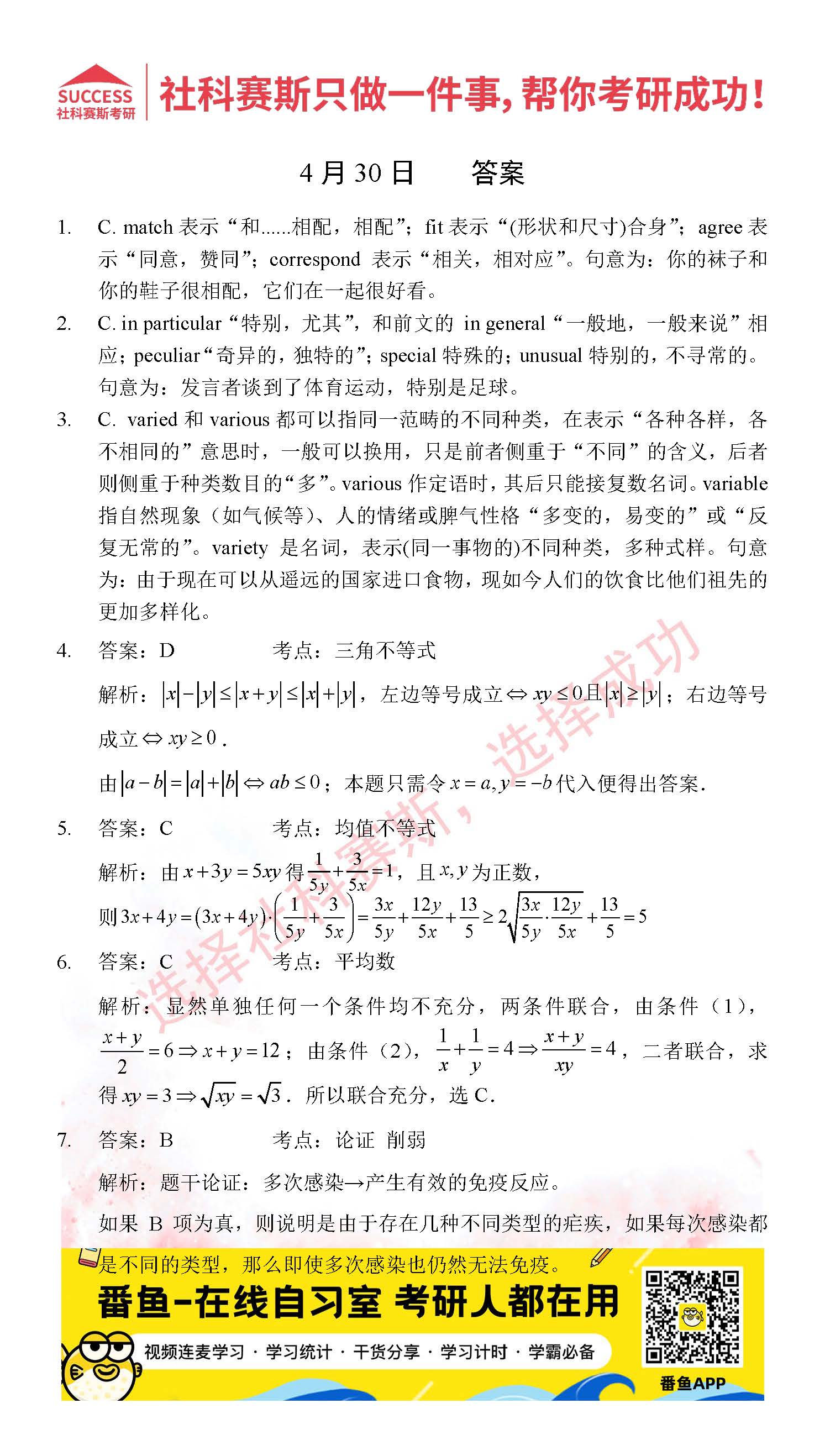 導(dǎo)讀:考研是一場(chǎng)持久戰(zhàn),保持良好的學(xué)習(xí)習(xí)慣,是能確保復(fù)習(xí)高效的關(guān)鍵。今天社科賽斯MBA備考網(wǎng)小編整理了“2022管理類(lèi)聯(lián)考4月30日每日一練及答案”的內(nèi)容,希望能對(duì)廣大考生有所幫助。