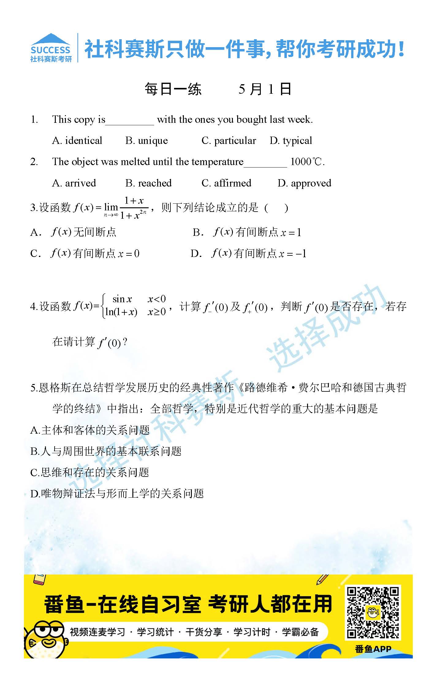 的全部內(nèi)容,希望各位考生堅(jiān)持利用起來,更多每日一練內(nèi)容請持續(xù)關(guān)注MBA備考網(wǎng)管理類聯(lián)考每日一練。