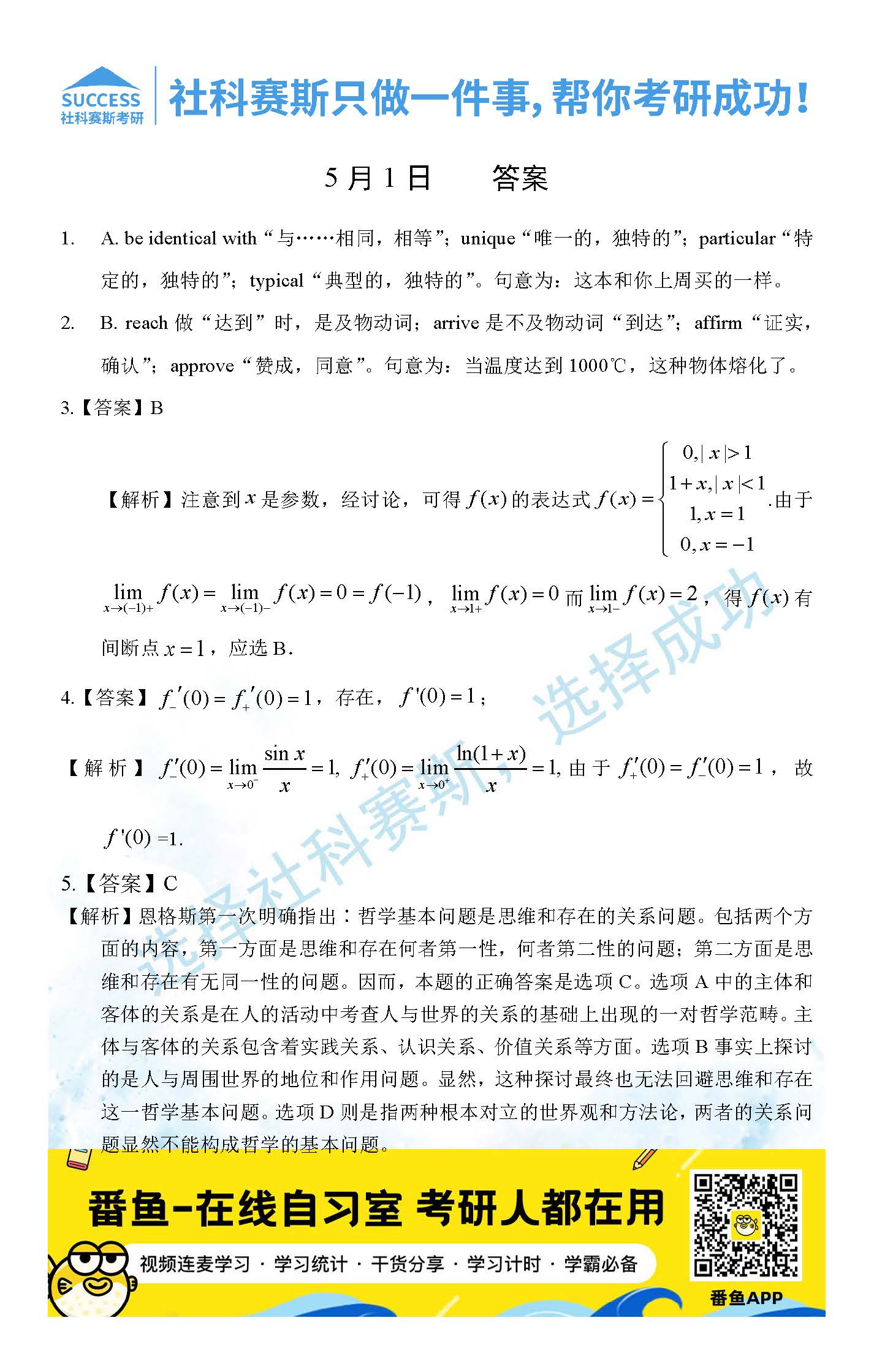2022管理類聯(lián)考5月1日每日一練及答案”