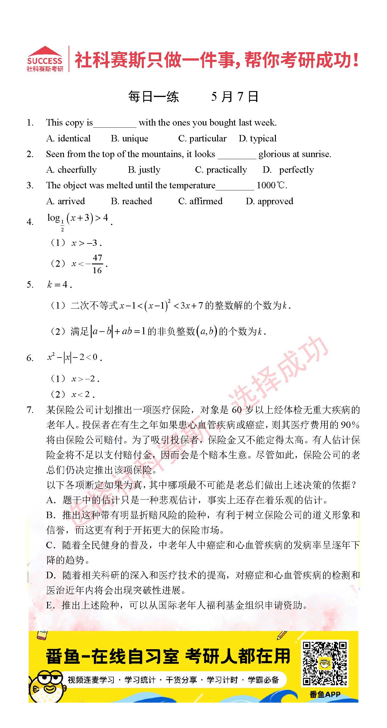 導讀:考研是一場持久戰(zhàn),保持良好的學習習慣,是能確保復習高效的關鍵。今天社科賽斯MBA備考網(wǎng)小編整理了“2022管理類聯(lián)考5月7日每日一練及答案”的內(nèi)容,希望能對廣大考生有所幫助。