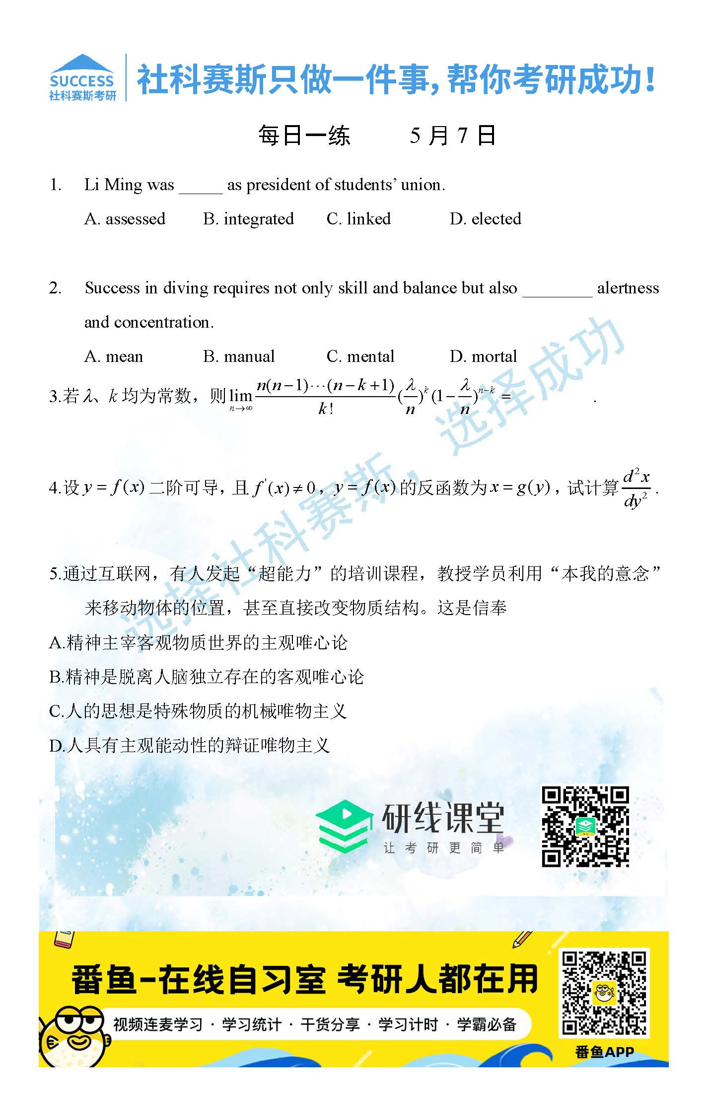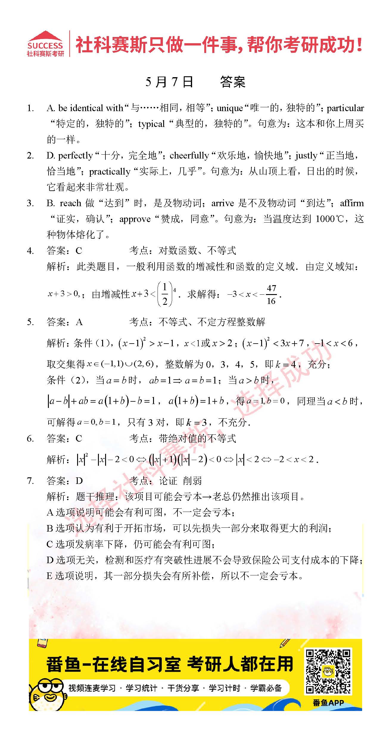 首頁> 管理類聯(lián)考每日一練 > 2022管理類聯(lián)考5月7日每日一練及答案