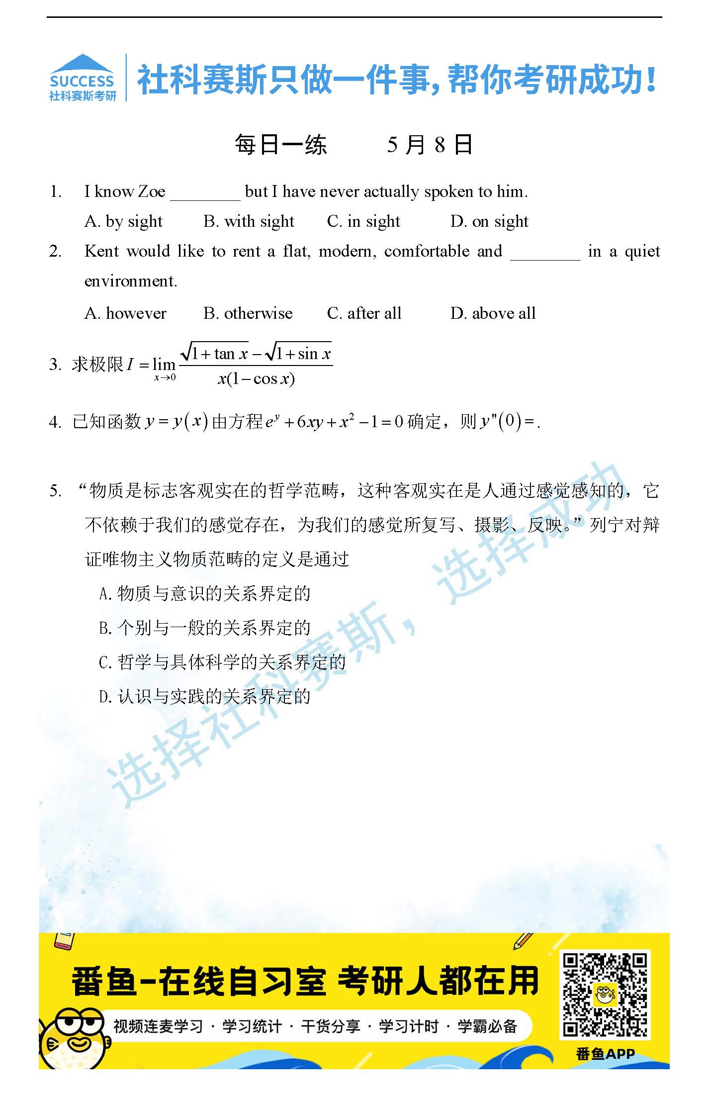 導(dǎo)讀:考研是一場持久戰(zhàn),保持良好的學(xué)習(xí)習(xí)慣,是能確保復(fù)習(xí)高效的關(guān)鍵。今天社科賽斯MBA備考網(wǎng)小編整理了“2022管理類聯(lián)考5月8日每日一練及答案”的內(nèi)容,希望能對廣大考生有所幫助。