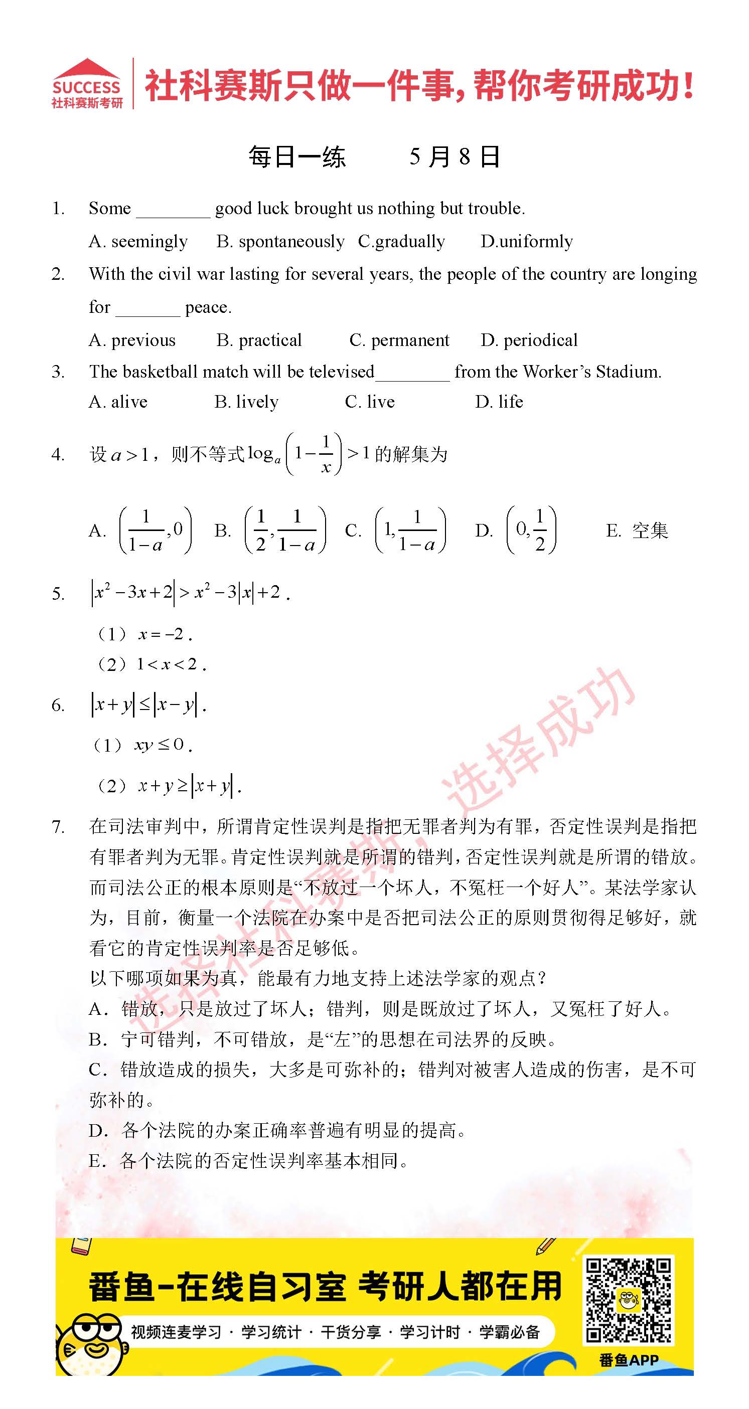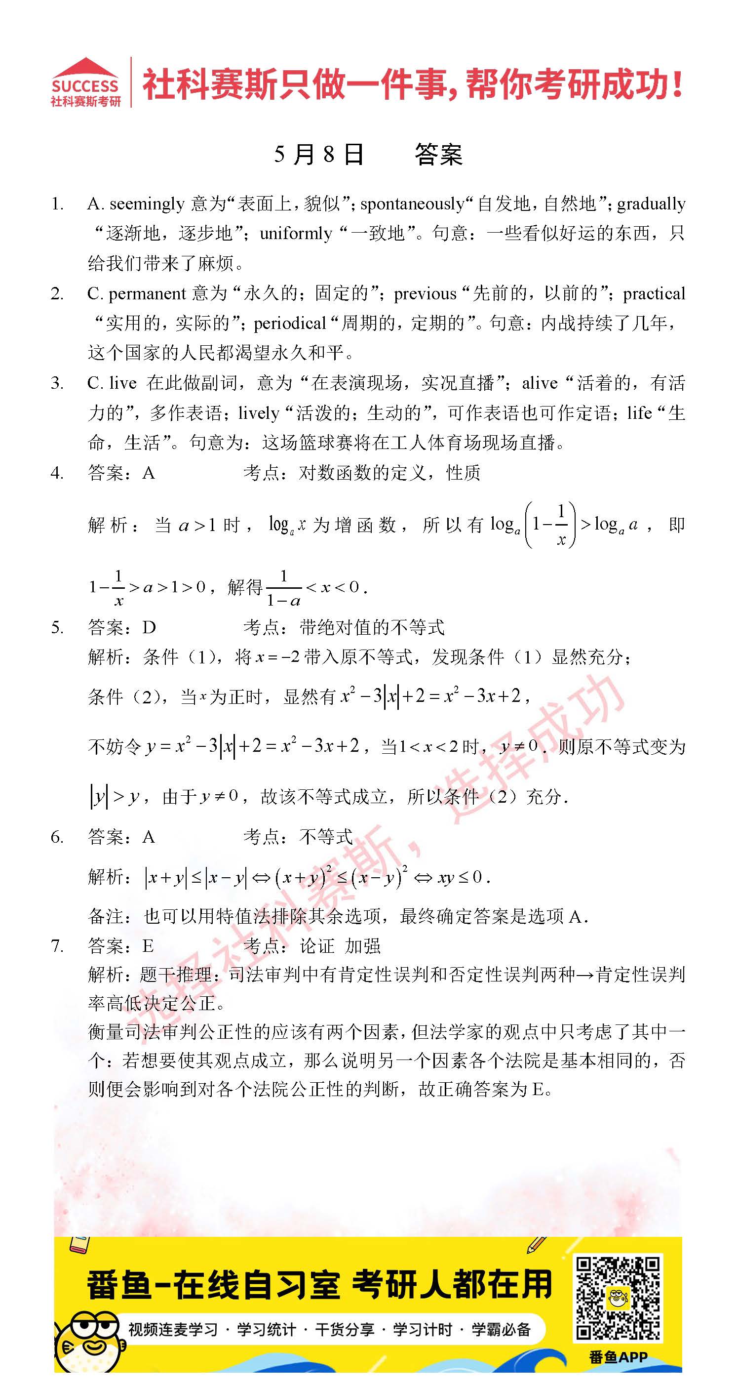 的全部內(nèi)容,希望各位考生堅(jiān)持利用起來,更多每日一練內(nèi)容請持續(xù)關(guān)注MBA備考網(wǎng)管理類聯(lián)考每日一練。