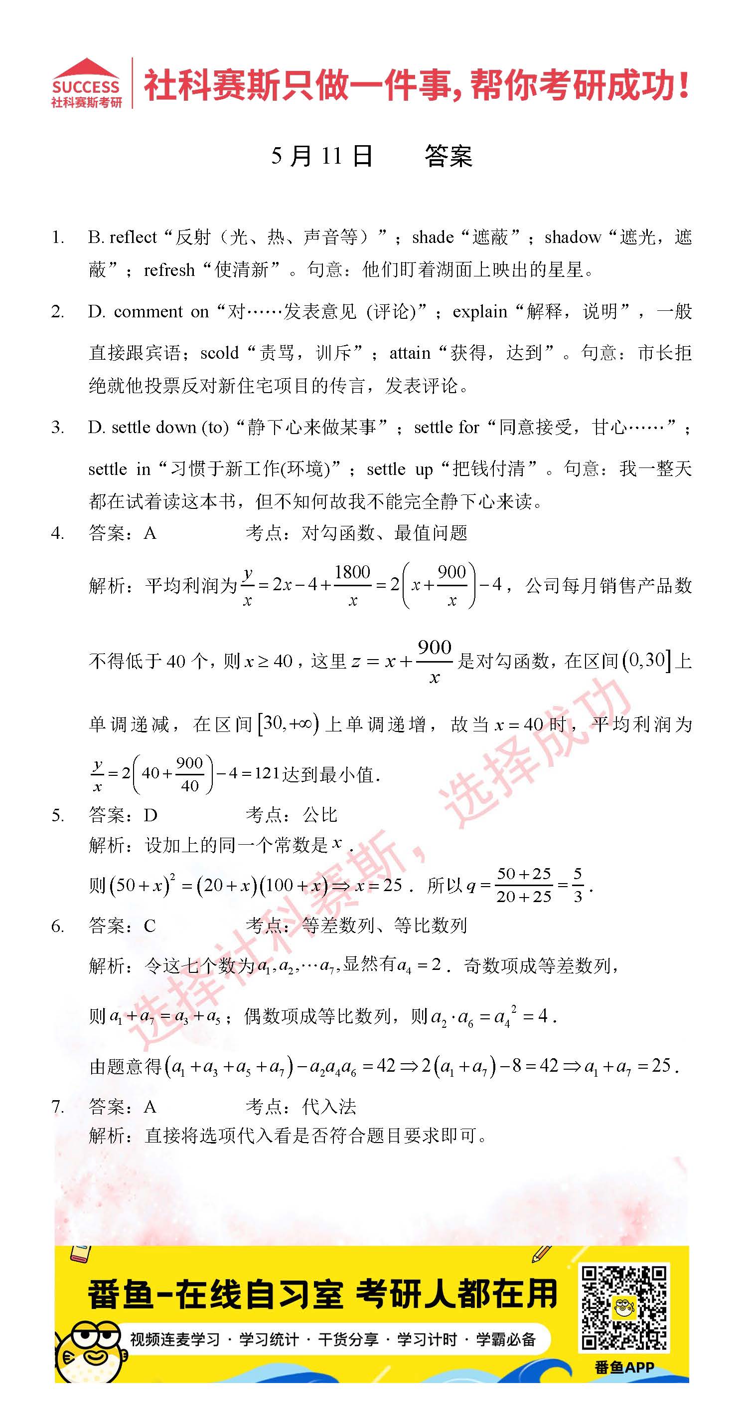 首頁> 管理類聯(lián)考每日一練 > 2022管理類聯(lián)考5月11日每日一練及答案