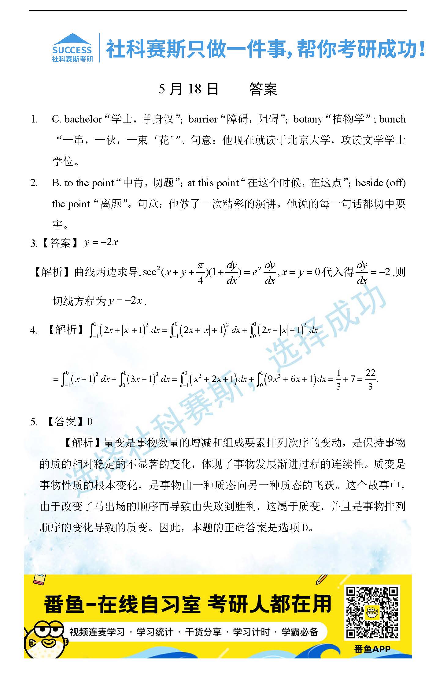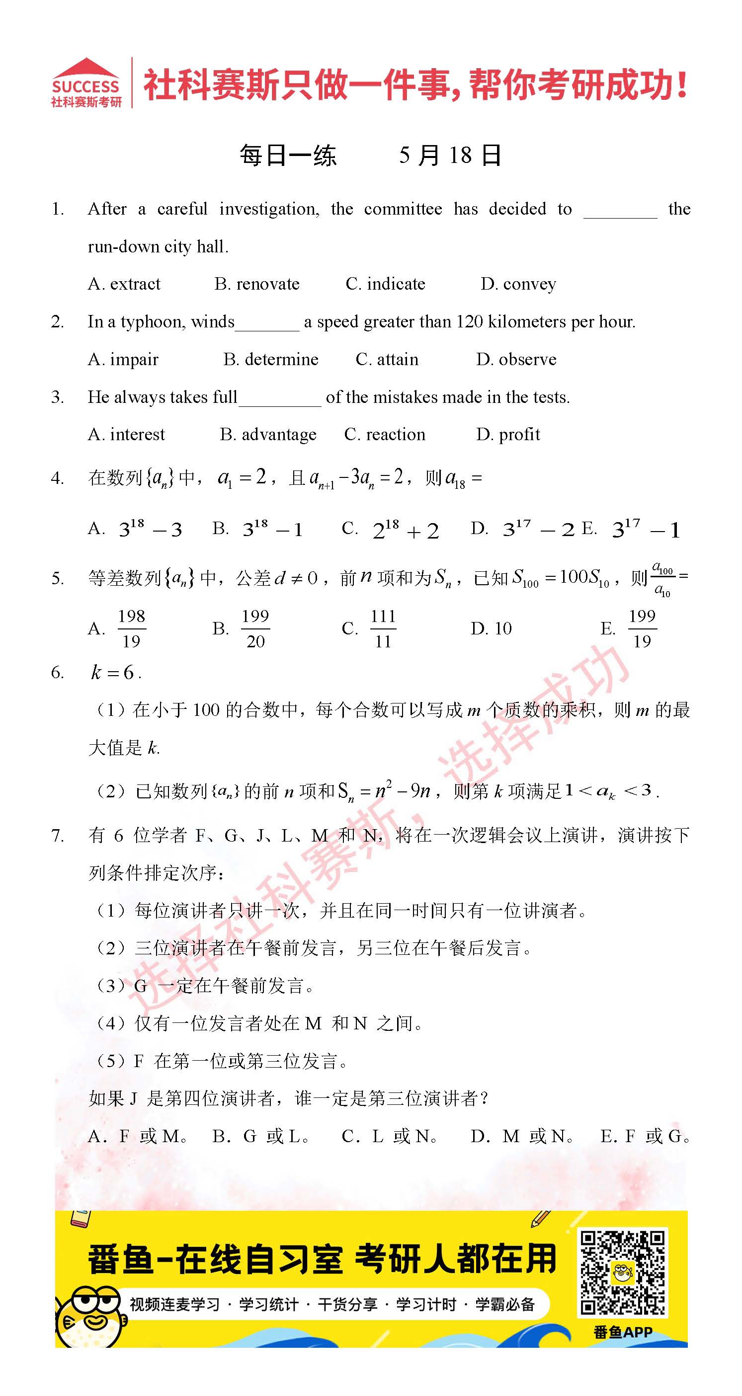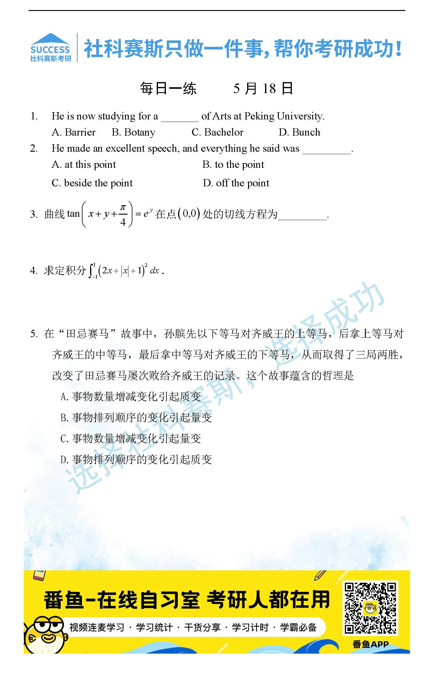 導(dǎo)讀:考研是一場(chǎng)持久戰(zhàn),保持良好的學(xué)習(xí)習(xí)慣,是能確保復(fù)習(xí)高效的關(guān)鍵。今天社科賽斯MBA備考網(wǎng)小編整理了“2022管理類聯(lián)考5月18日每日一練及答案”的內(nèi)容,希望能對(duì)廣大考生有所幫助。