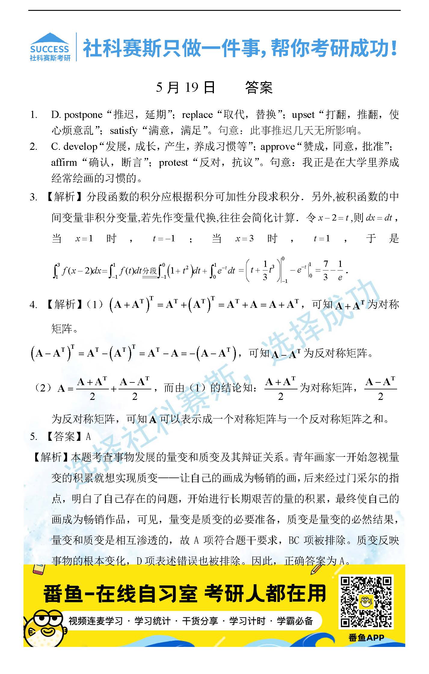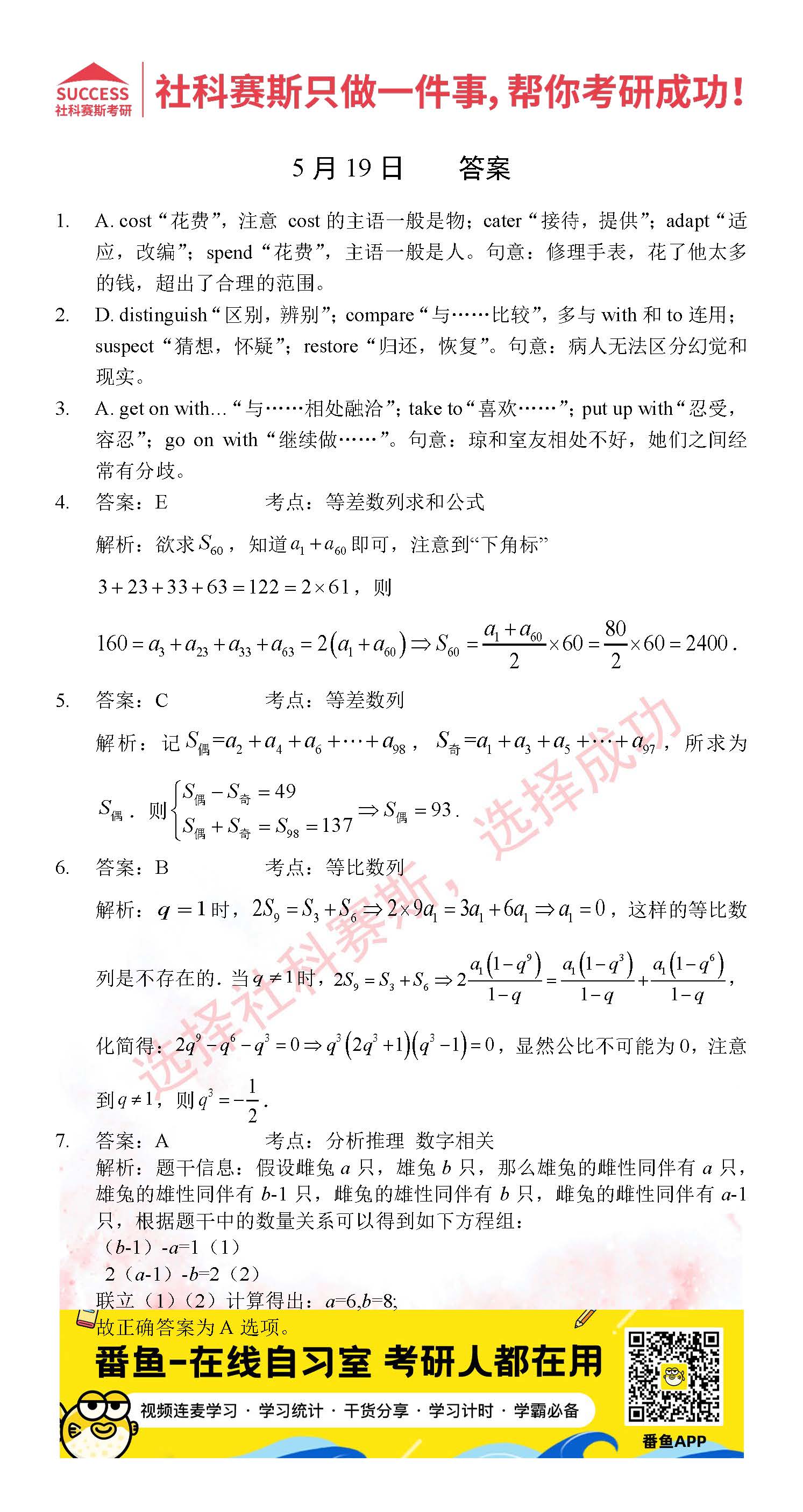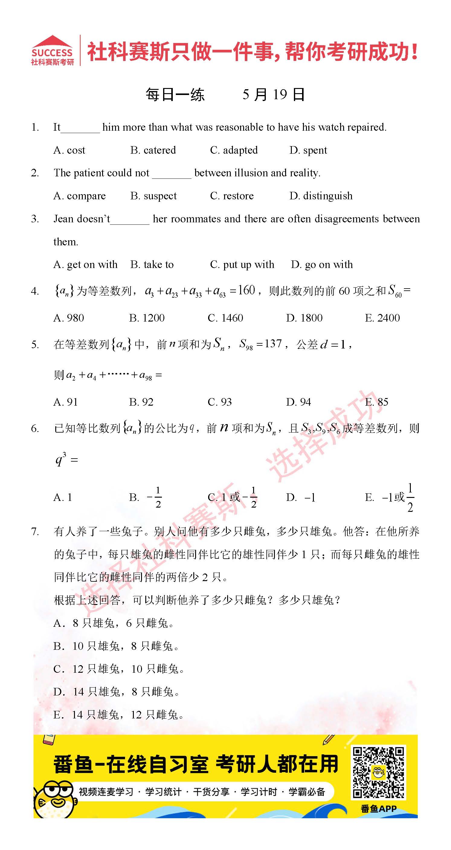 導(dǎo)讀:考研是一場(chǎng)持久戰(zhàn),保持良好的學(xué)習(xí)習(xí)慣,是能確保復(fù)習(xí)高效的關(guān)鍵。今天社科賽斯MBA備考網(wǎng)小編整理了“2022管理類(lèi)聯(lián)考5月19日每日一練及答案”的內(nèi)容,希望能對(duì)廣大考生有所幫助。