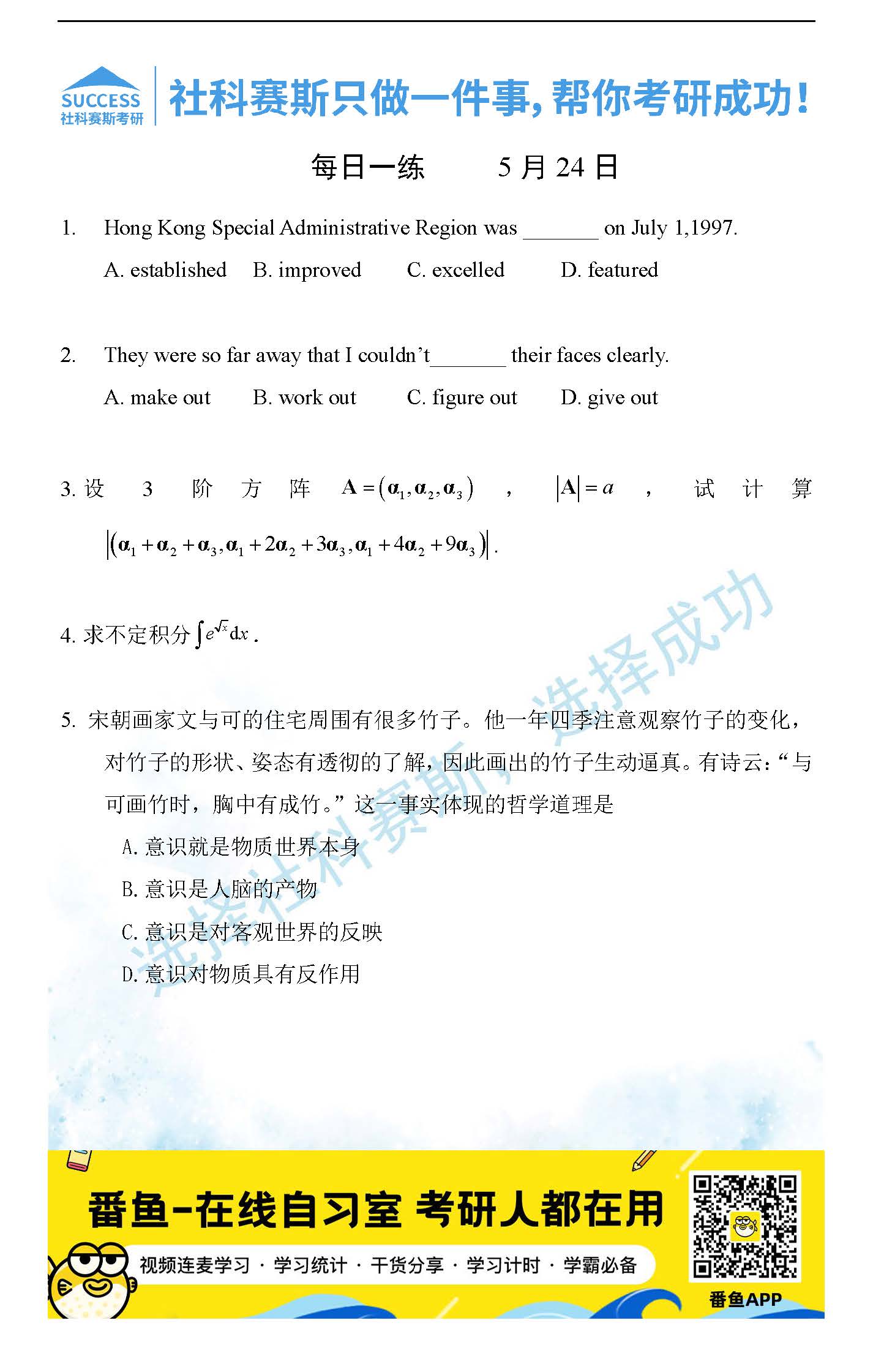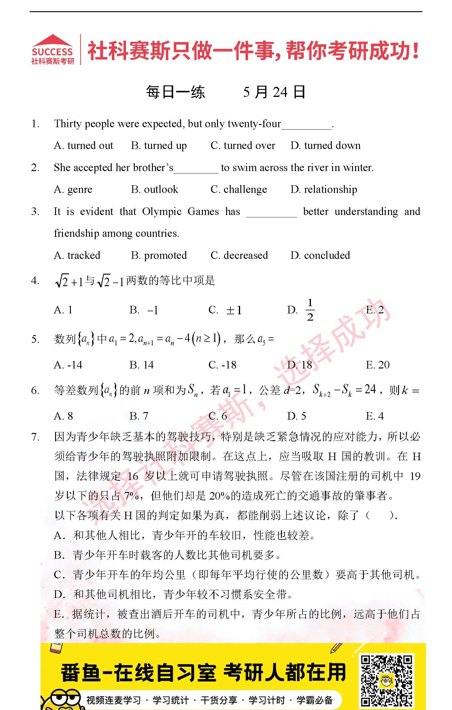 2022管理類聯(lián)考5月24日每日一練及答案”