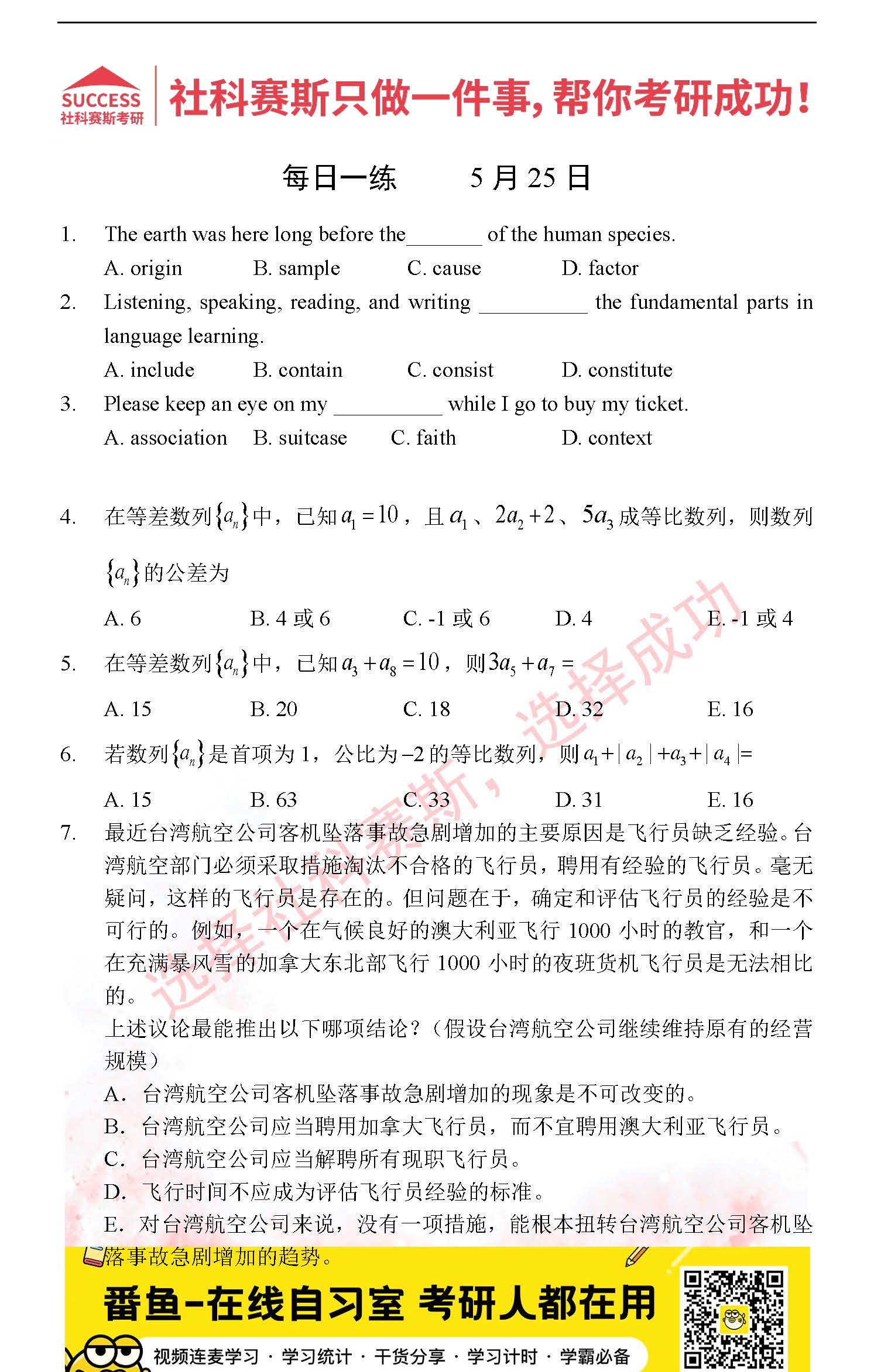 的全部內(nèi)容,希望各位考生堅(jiān)持利用起來,更多每日一練內(nèi)容請持續(xù)關(guān)注MBA備考網(wǎng)管理類聯(lián)考每日一練。