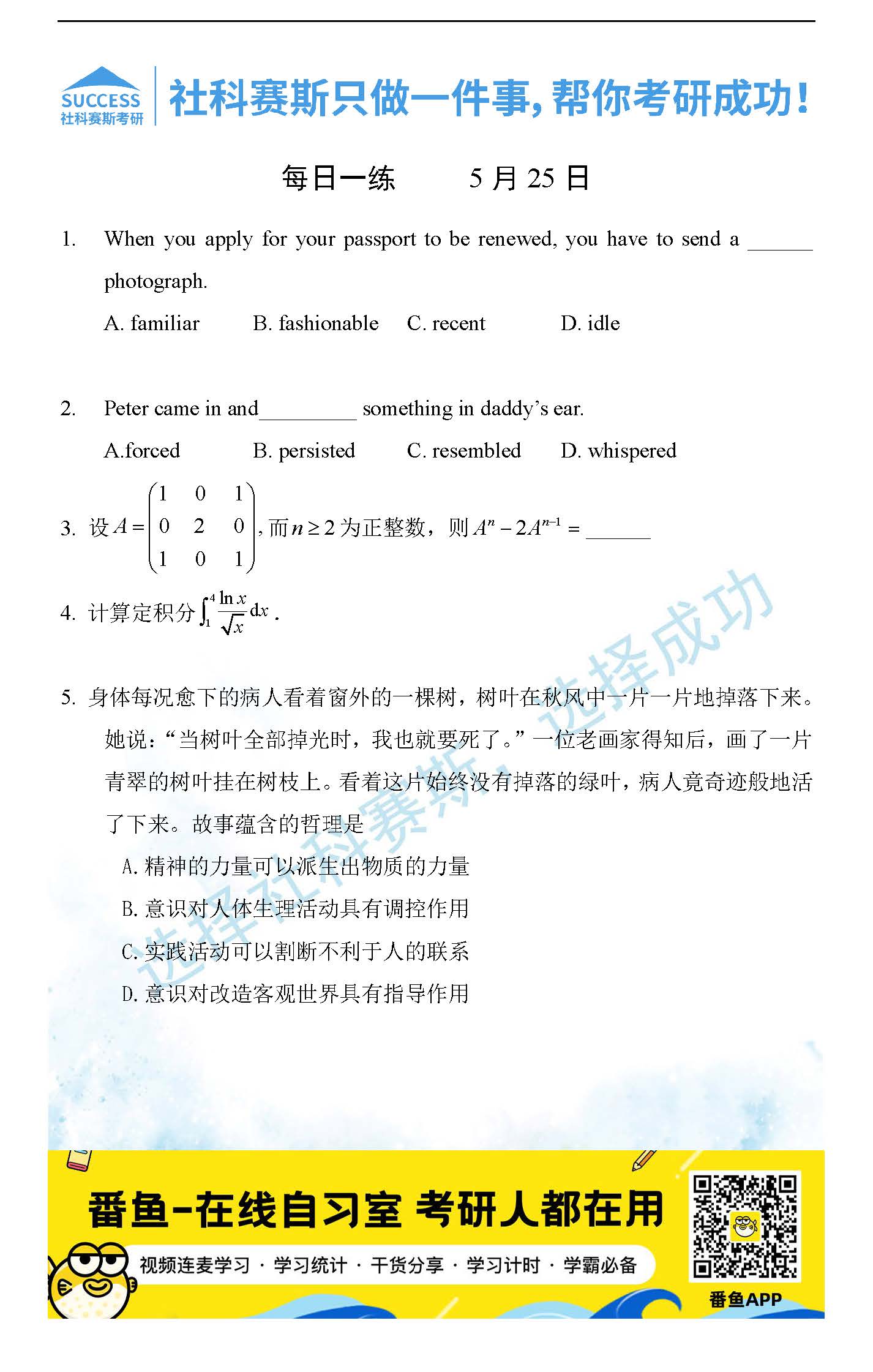2022管理類聯(lián)考5月25日每日一練及答案”