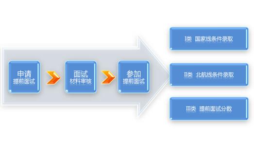 面試成績(jī)?yōu)?ldquo;Ⅱ類”的考生,獲得“北航線條件預(yù)錄取” 資格,只要其第一志愿報(bào)考北航且聯(lián)考成績(jī)達(dá)到北航自主線,即可直接擬錄取;
