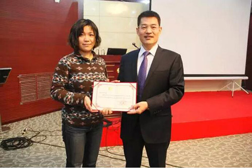 劉平老師為李發(fā)進(jìn)校長(zhǎng)頒發(fā)證書