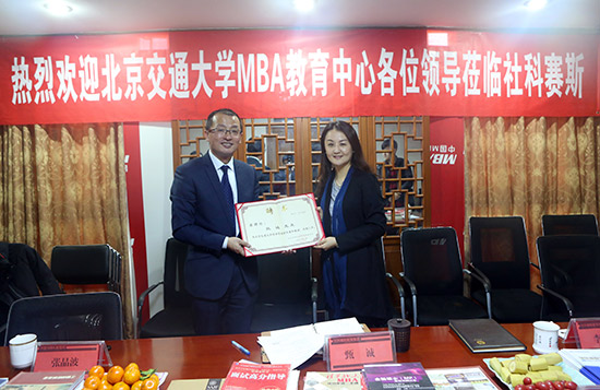 為進(jìn)一步加強(qiáng)北京交通大學(xué)MBA教育與企業(yè)的交流與合作,建立一支以學(xué)者、企業(yè)家為核心的教師隊(duì)伍,深化MBA教育改革,提高M(jìn)BA教育質(zhì)量和水平。期間,左莉主任代表經(jīng)管學(xué)院向北京社科賽斯(SUCCESS)教育集團(tuán)創(chuàng)始人、董事長甄誠先生頒發(fā)兼職教授聘書,聘期三年。甄誠董事長在會(huì)上談到:“被聘任為北京交通大學(xué)經(jīng)濟(jì)管理學(xué)院兼職教授既是一份信任更是一份責(zé)任與擔(dān)當(dāng),再接下來的工作當(dāng)中,必將結(jié)合自己的經(jīng)驗(yàn)和資源,定期與MBA學(xué)員們進(jìn)行職業(yè)發(fā)展等方面的交流。MBA學(xué)員們?cè)趯W(xué)習(xí)、創(chuàng)業(yè)過程中遇到的困難,也將盡己所能,給予他們相關(guān)指導(dǎo)”。左莉主任表示:希望在專家的指導(dǎo)下,把北京交通大學(xué)MBA教育質(zhì)量提升到一個(gè)更高的層次,取得更好的成績(jī),特別在MBA職業(yè)規(guī)劃及職業(yè)生涯設(shè)計(jì)、MBA面試指導(dǎo)、創(chuàng)新創(chuàng)業(yè)等方面給予支持。
