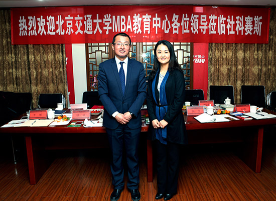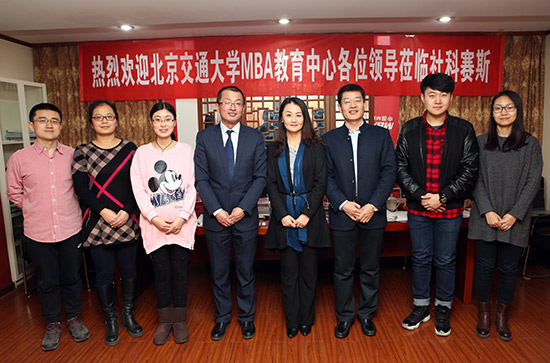 “百年交大,百年經(jīng)管”――橫跨三個(gè)世紀(jì)的北京交通大學(xué)作為中國一所專門培養(yǎng)管理人才的高校,MBA項(xiàng)目在北交大經(jīng)管學(xué)院落腳,二十多年來取得了重大發(fā)展。2016年1月6日,明媚的陽光照散了久日的霧霾,在這樣一個(gè)美好的天氣中,社科賽斯(SUCCESS)教育集團(tuán)北京總部迎來了尊貴的客人――北京交通大學(xué)MBA教育工作者,分別是北京交通大學(xué)MBA教育中心主任左莉副教授,MBA中心苗慧老師、李娜老師、邢敏老師、丁正陽老師。集團(tuán)領(lǐng)導(dǎo)甄誠董事長、李發(fā)進(jìn)校長,中國MBA教育網(wǎng)張晶波副總裁等核心領(lǐng)導(dǎo)熱情接待了到訪嘉賓。