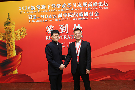 導(dǎo)讀: 2016年1月20日,由E-MBA云商學(xué)院主辦的2016新常態(tài)下經(jīng)濟改革與發(fā)展高峰論壇暨E-MBA云商學(xué)院戰(zhàn)略研討會在北京釣魚臺國賓館隆重召開。200