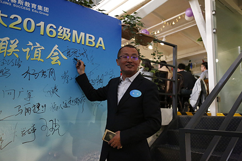 上周六傍晚,社科賽斯在798藝術(shù)區(qū)的一家泰餐廳內(nèi)組織了一場(chǎng)別開(kāi)生面的聚會(huì)。聚會(huì)的來(lái)客都是參加社科賽斯的已經(jīng)考取2016級(jí)人大MBA的學(xué)員。餐廳二樓的大廳內(nèi),坐滿了40余名剛剛金榜題名的考生,而這,僅僅是2016級(jí)社科學(xué)員中考取人大考生的一部分。為了向考生們表達(dá)衷心的祝 賀,并與考生們一同分享收獲的喜悅,社科賽斯董事長(zhǎng)甄誠(chéng),副董事長(zhǎng)趙新,校長(zhǎng)李發(fā)進(jìn),副校長(zhǎng)王金門(mén)以及社科賽斯的老師們出席了此次聚會(huì)。同時(shí),社科賽斯還特別邀請(qǐng)了兩位2015級(jí)考取人大MBA的社科賽斯學(xué)員與大家進(jìn)行經(jīng)驗(yàn)分享。