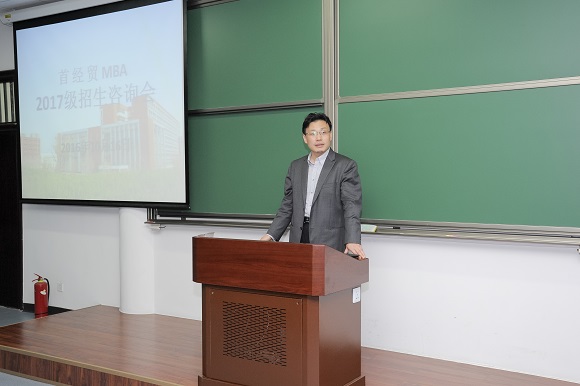 首先,首經(jīng)貿(mào)MBA教育中心副主任徐煒老師介紹首經(jīng)貿(mào)MBA招生政策及申請流程。徐煒老師指出,首經(jīng)貿(mào)作為國內(nèi)較早開設(shè)企業(yè)管理和開展商科教育的高校之一,MBA項(xiàng)目擁有實(shí)力雄厚的教師隊(duì)伍、堅(jiān)實(shí)寬廣的實(shí)踐平臺、豐富的國際教育資源和國際化氛圍、優(yōu)越的區(qū)域位置等優(yōu)勢,每年都吸引眾多學(xué)子前來報(bào)考。