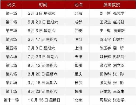 4月14日北大光華管理學(xué)院公布了全年的申請(qǐng)公開課時(shí)間安排,從5月6日北京的第一場(chǎng)開始,2017年一共有11場(chǎng)分布于全國(guó)各地的公開課。
