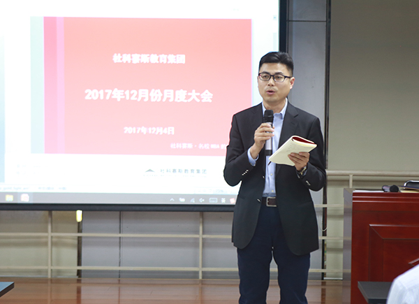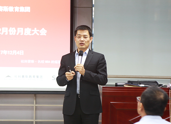 之后李發(fā)進校長總結(jié)集團11月任務(wù)完成情況及12月集團業(yè)務(wù)具體安排。12月是關(guān)鍵且繁忙的一個月,李校發(fā)布了這30天里大家需關(guān)注的日期及目標。2018年集團實行五條管理主線:1.市場銷售管理線,2.教學(xué)教務(wù)管理線,3.網(wǎng)絡(luò)及信息化系統(tǒng)管理線,4.人事行政管理線,5.財務(wù)及融資管理線。繼“服務(wù)年”及“標準化年”之后,2018年將是社科賽斯的“信息化年”。