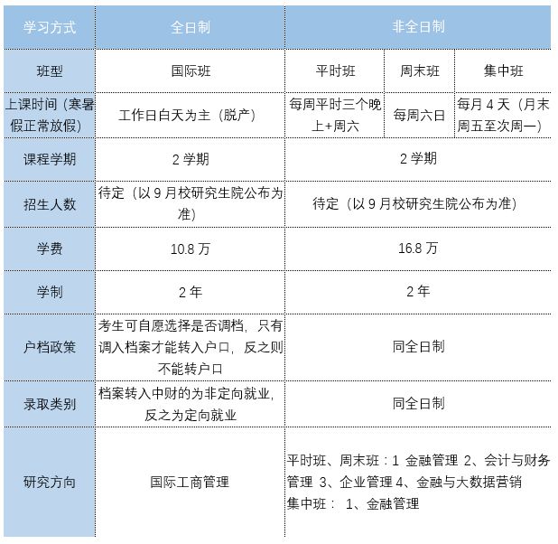 非全日制,學(xué)費(fèi)8.9萬,招120人左右,周末班(周六、日上課),集中班(每月集中一次),F(xiàn)MBA(周六、日上課)。