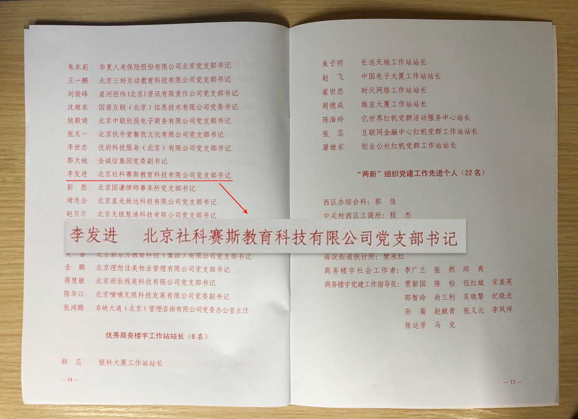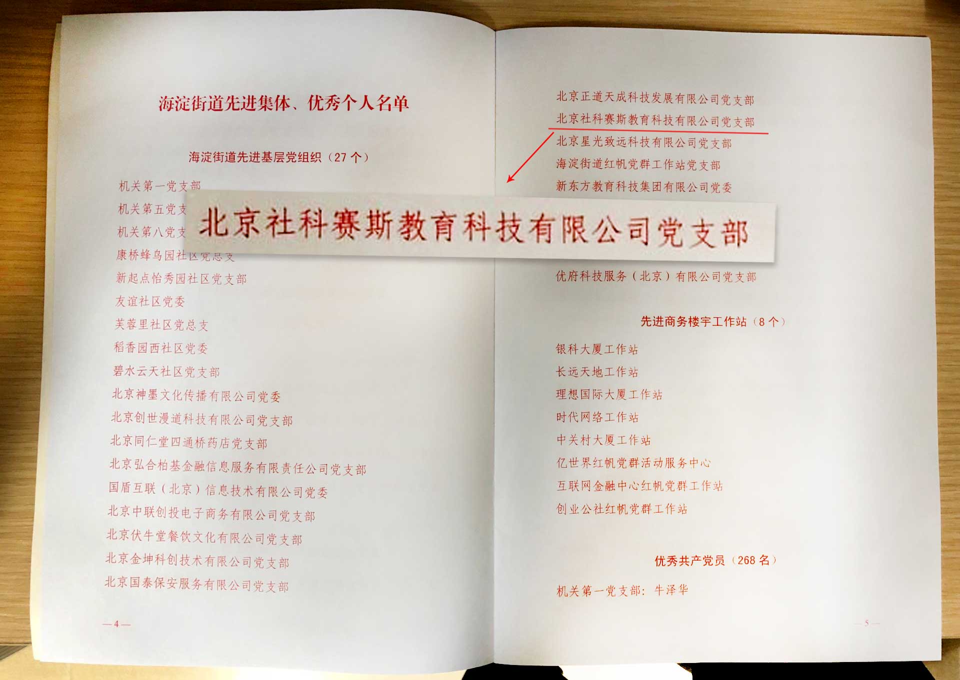 北京北京社科賽斯黨支部被評(píng)為海淀街道先進(jìn)基層黨組織