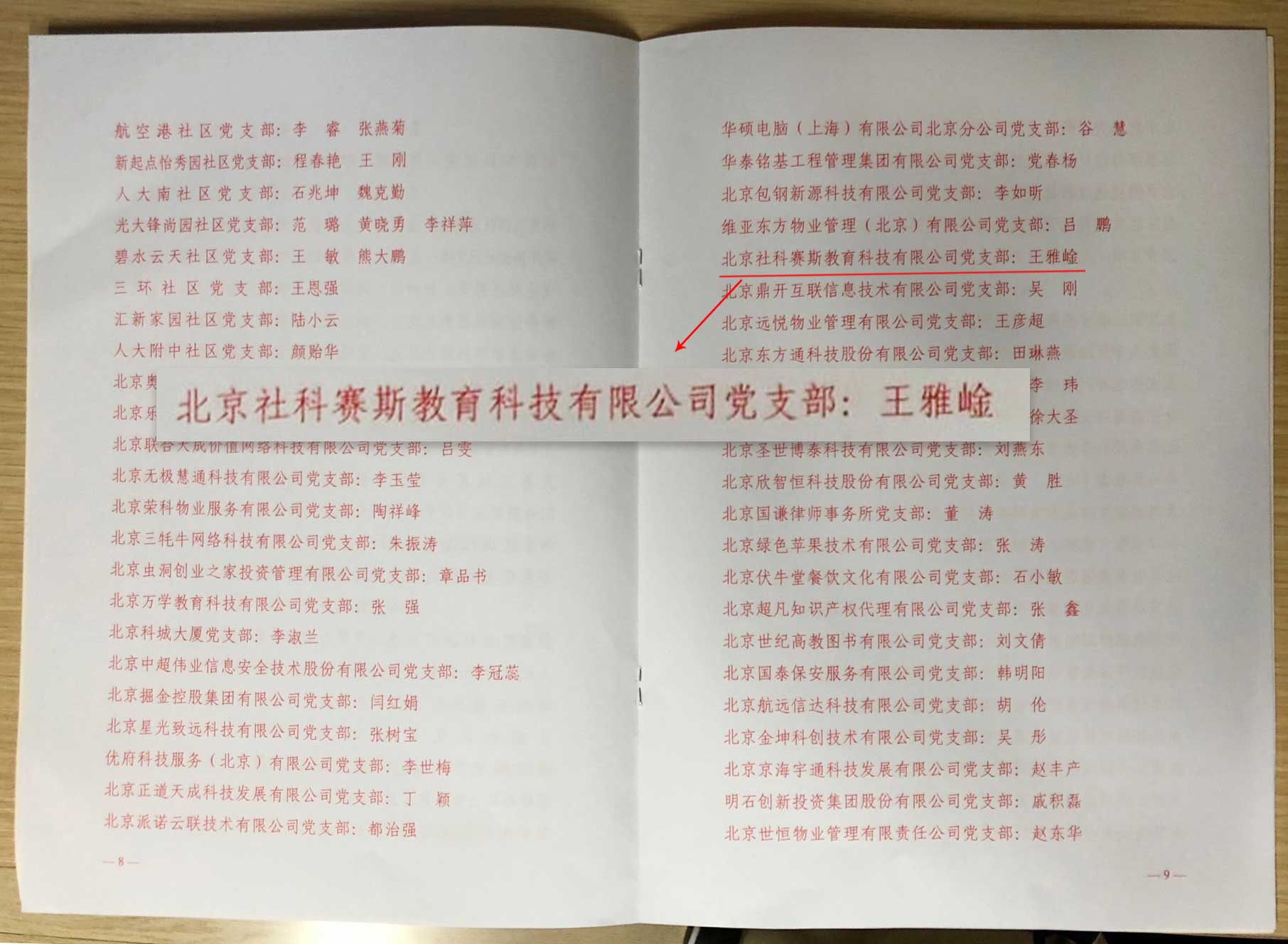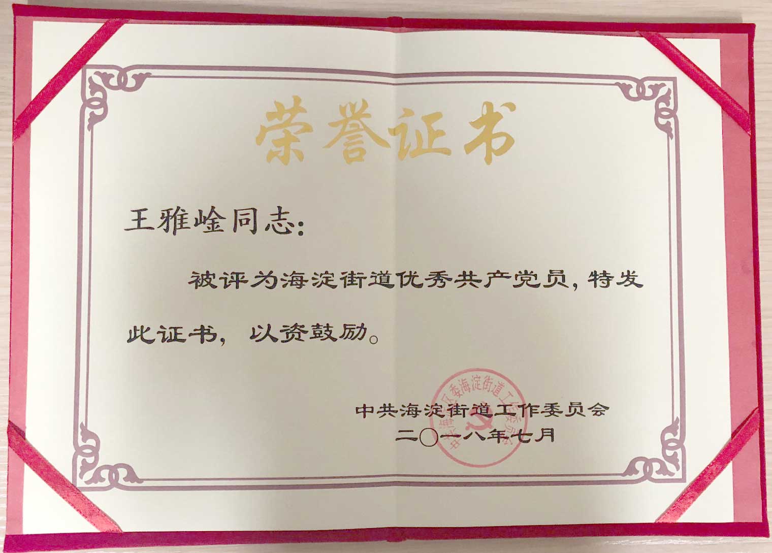 北京北京社科賽斯黨支部組織委員王雅崯被評(píng)為海淀街道優(yōu)秀共產(chǎn)黨員