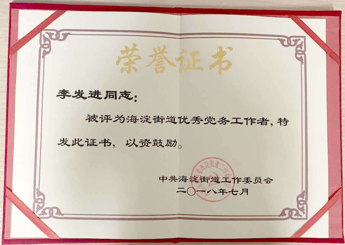 北京北京社科賽斯黨支部書記李發(fā)進(jìn)被評(píng)為海淀街道優(yōu)秀黨務(wù)工作者