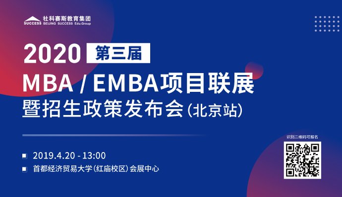 為幫助考生與院校間搭建透明、互信、深入了解的交流平臺,打破區(qū)域的影響,實(shí)現(xiàn)項(xiàng)目齊全盡分享,直面院校知真相的目的。4月20日,將攜手首都經(jīng)濟(jì)貿(mào)易大學(xué)MBA教育中心,聯(lián)合全國30所商學(xué)院主辦第三屆MBA教育展暨2020招生政策發(fā)布會(北京站),屆時(shí)各優(yōu)秀商學(xué)院MBA招生辦主任親臨現(xiàn)場,為廣大考生提供真實(shí)、實(shí)用的報(bào)考新政策,3小時(shí)揭開全國知名商學(xué)院MBA項(xiàng)目“神秘面紗”。