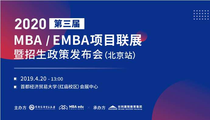 為幫助考生與院校間搭建透明、互信、深入了解的交流平臺,打破區(qū)域的影響,實現(xiàn)項目齊全盡分享,直面院校知真相的目的。4月20日,中國MBA教育網(wǎng)將攜手首都經(jīng)濟(jì)貿(mào)易大學(xué)MBA教育中心,聯(lián)合全國30所商學(xué)院主辦第三屆MBA教育展暨2020招生政策發(fā)布會(北京站),屆時各優(yōu)秀商學(xué)院MBA招生辦主任親臨現(xiàn)場,為廣大考生提供真實、實用的報考新政策,3小時揭開全國知名商學(xué)院MBA項目“神秘面紗”。