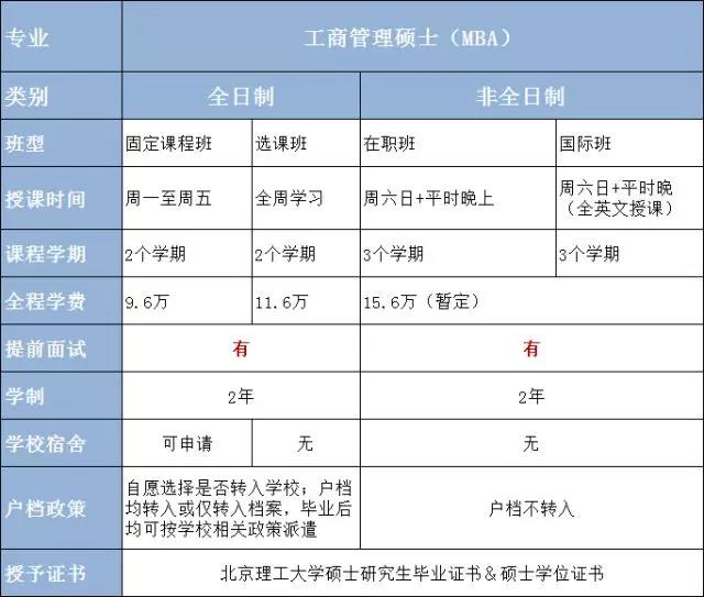 北京航空航天大學(xué)2019年MBA計(jì)劃招生400人,全日制50人,周一至周五全天上課,學(xué)制2年;非全日制350人,周末班是周六、周日全天上課,集中班是每月集中2次授課,每次授課時(shí)間為周五下午、晚上及周六、日全天,學(xué)制2年。