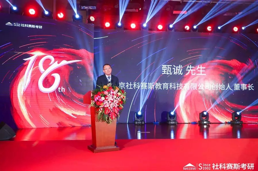 甄誠(chéng)董事長(zhǎng)首先感謝來(lái)自全國(guó)各地的嘉賓和親人相聚于此,社科賽斯風(fēng)風(fēng)雨雨十八年,源于家人們的眾志長(zhǎng)城,艱苦奮斗,使我們進(jìn)入考研領(lǐng)域的快車道。也非常感謝在場(chǎng)朋友們的見證、支持、督促,使我們社科賽斯能夠茁壯成長(zhǎng)。最后,甄總對(duì)與會(huì)領(lǐng)導(dǎo),嘉賓,家人致以新年的祝福,并用習(xí)總書記的話勉勵(lì)社科賽斯人,萬(wàn)眾一心加油干,越是艱險(xiǎn)越向前,只爭(zhēng)朝夕,不負(fù)韶華,2020,共同拼搏出社科賽斯的新輝煌!