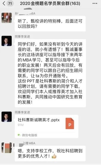 兩個多小時的直播分享,獲得學(xué)員的一致好評。至此,《MBA——職場制勝之道》專題報告圓滿結(jié)束。