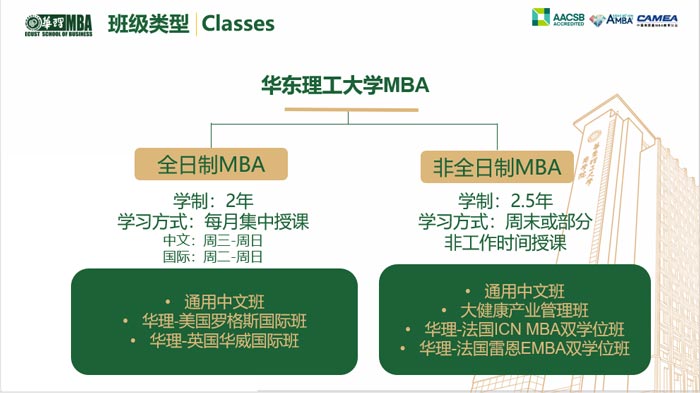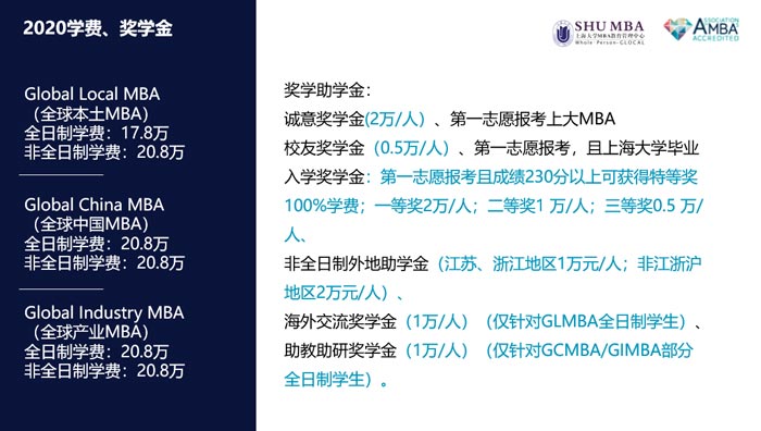 上海大學(xué)MBA以培養(yǎng)全面發(fā)展,可相信與可共事的Global Local人才為理念,以走進(jìn)世界,走進(jìn)產(chǎn)業(yè),提供具有貢獻(xiàn)與影響力的一流研究生商學(xué)院教育為愿景,提出了以全面發(fā)展復(fù)合性人才、知智融合實踐型人才、ECO資源融合的全融教育理念。目前上海大學(xué)MBA開辦有全球本土(全日制/非全日制)項目、全球產(chǎn)業(yè)(全日制/非全日制)項目,全球中國(全日制/非全日制)項目。艾老師強調(diào),上海大學(xué)MBA2021預(yù)復(fù)試已全面開啟,第4批預(yù)復(fù)試報名將在8月11日截止,希望有志于上大MBA的考生盡快參加預(yù)復(fù)試。