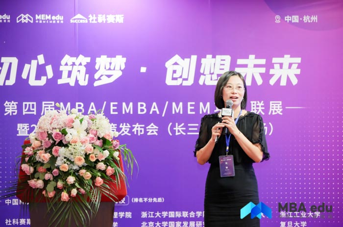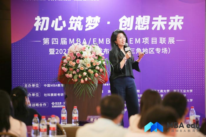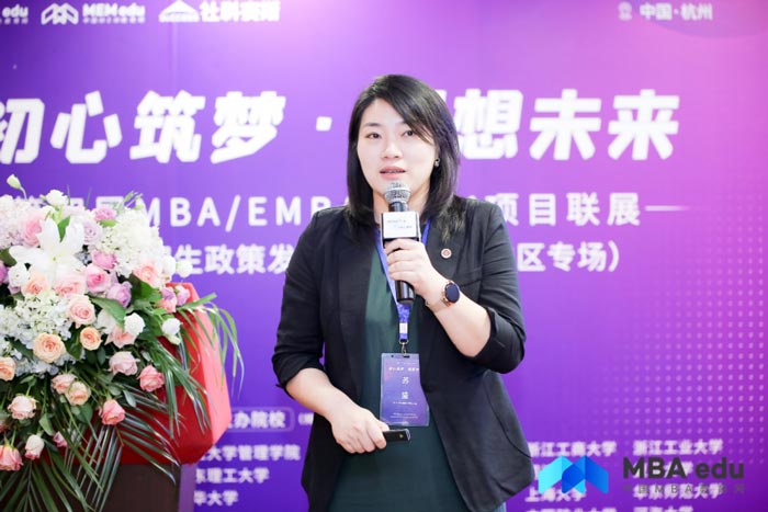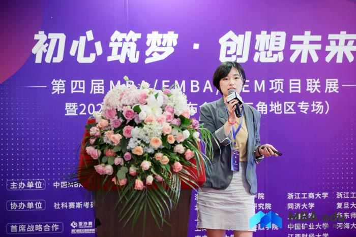 浙江工業(yè)大學(xué)MBA中心招生主管陳鴿老師圍繞院校發(fā)展概況、學(xué)生活動、師資力量、國際項目等內(nèi)容進(jìn)行詳細(xì)解讀。她表示,浙工大MBA以培養(yǎng)“東方智慧、國際視野、創(chuàng)新思維、社會責(zé)任,知行合一的商界精英”為目標(biāo),進(jìn)行培養(yǎng)方案升級,協(xié)同培養(yǎng),依托大數(shù)據(jù)智能化,推動中小企業(yè)實現(xiàn)成長,體現(xiàn)制造業(yè)領(lǐng)袖特色,其創(chuàng)業(yè)管理MBA尤為特色方向。