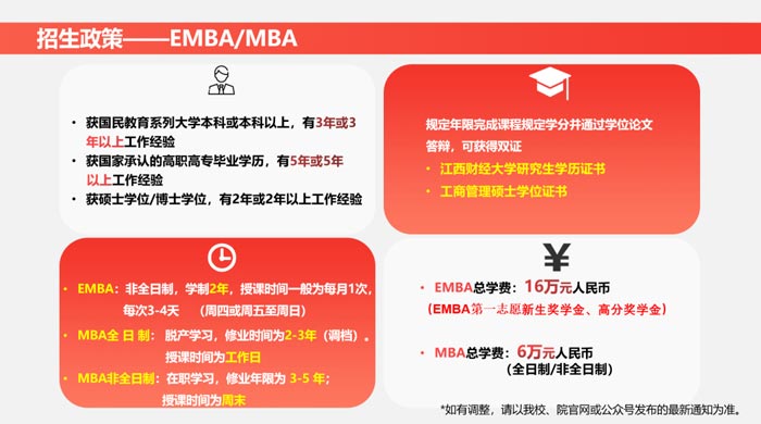 江西財經(jīng)大學(xué)MBA教育學(xué)院副院長金欣老師表示,江西財經(jīng)大學(xué)自2009年開辦EMBA項目,是第二批、江西省唯一一所EMBA辦學(xué)院校,踐行“信敏廉毅”校訓(xùn),服務(wù)地方經(jīng)濟(jì)發(fā)展,形成了“一個核心、四輪驅(qū)動、兩大機(jī)制”的教學(xué)培養(yǎng)模式,致力于培養(yǎng)具有領(lǐng)軍思維、管理技能、社會責(zé)任和人文修養(yǎng)能力的成長性企業(yè)領(lǐng)軍人才。江西財經(jīng)大學(xué)MBA則開辦于1997年,是全國第三批、江西省首家獲批MBA開辦資格的院校,其致力于培養(yǎng)具有“秉承信敏廉毅校訓(xùn),熟悉中國管理情景,掌握現(xiàn)代管理理論,引領(lǐng)青年創(chuàng)業(yè)潮流”的創(chuàng)業(yè)管理精英,為政界和商業(yè)均培養(yǎng)了一大批優(yōu)秀管理人才,期待更多菁英加入江財MBA/EMBA。