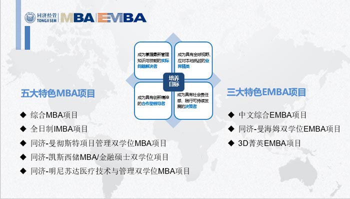 同濟(jì)大學(xué)MBA/EMBA憑借工程技術(shù)學(xué)科背景、國際化水平與應(yīng)用實踐,形成了鮮明的辦學(xué)特色,擁有五大特色MBA項目、三大特色EMBA項目。同濟(jì)大學(xué)MBA國際招生及合作總監(jiān)胡素菡老師表示,同濟(jì)大學(xué)MBA/EMBA旨在培養(yǎng)實際問題的解決者、業(yè)界精英、合作型領(lǐng)導(dǎo)者與決策者,2021年提供多類型入學(xué)MBA/EMBA獎學(xué)金,歡迎廣大同學(xué)關(guān)注并報考同濟(jì)大學(xué)MBA/EMBA。