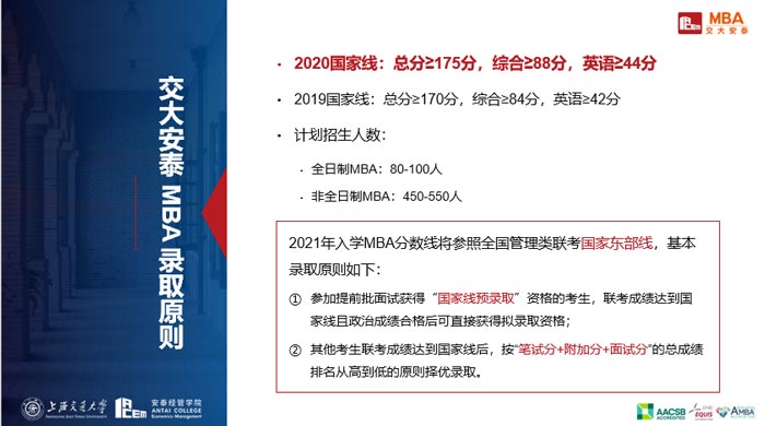 攻讀交大安泰MBA,開啟商界領(lǐng)袖夢想。上海交通大學(xué)安泰經(jīng)管學(xué)院MBA招生主管牟鵬飛老師從品牌、課程、平臺、文化四方面切入,對項目做了詳細(xì)解讀。牟鵬飛老師指出,上海交大安泰MBA全日制開設(shè)國際MBA、中國全球運營領(lǐng)袖項目,非全日制開設(shè)綜合MBA、金融MBA、人工智能MBA,幫助廣大考生系統(tǒng)化掌握知識結(jié)構(gòu),根植于企業(yè)實踐,圓夢商界領(lǐng)袖之大未來。據(jù)悉,第三批入學(xué)提前面試將于8月23日截止,歡迎廣大考生關(guān)注并積極備考。
