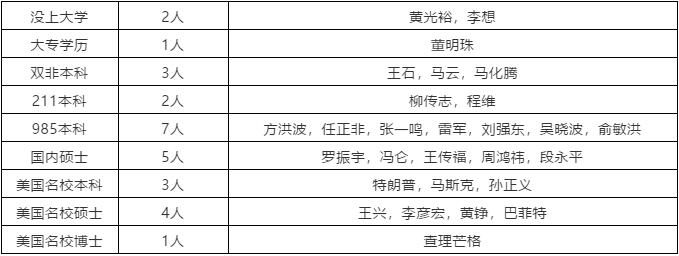 知名自媒體人何加鹽曾經(jīng)做過(guò)一項(xiàng)統(tǒng)計(jì),分析了28名企業(yè)家和學(xué)歷之間的關(guān)系。